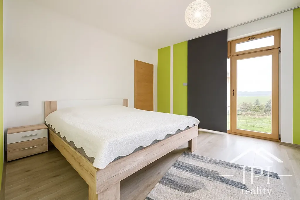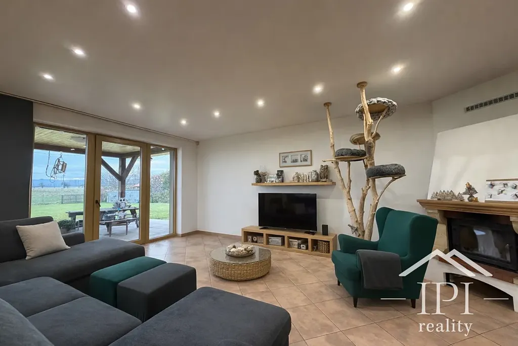 Z obývacího pokoje je přímý vstup na krytou terasu a dále na zahradu orientovanou na jih. Součástí denní zóny je také samostatné WC pro hosty.