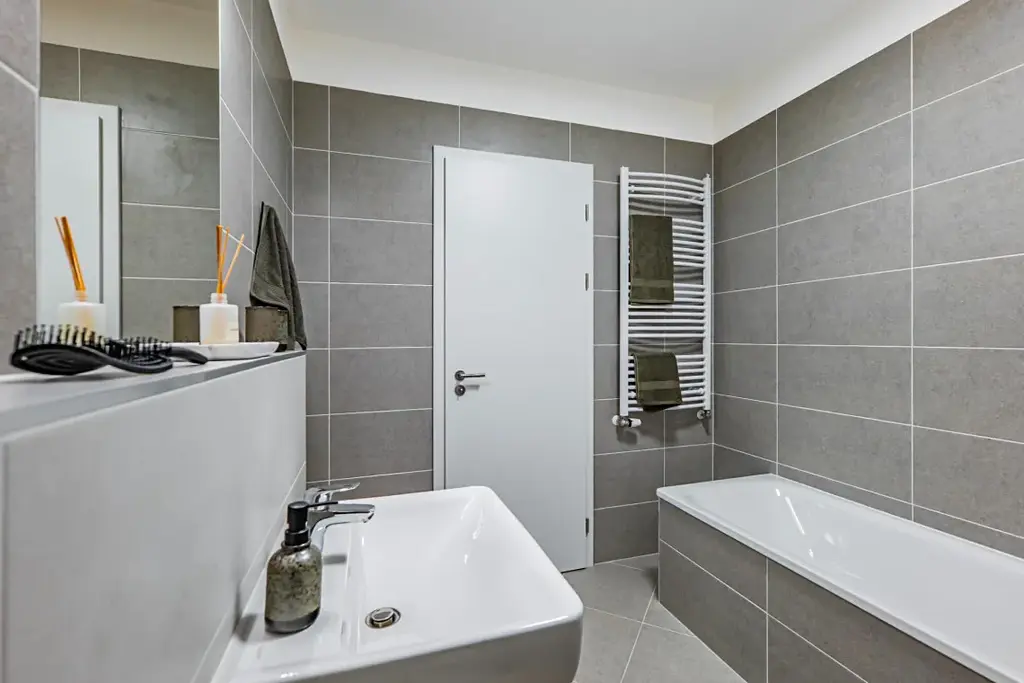 K bytu naleží prostorné parkovací stání umístěné v -1 podzemním podlaží bytového domu.