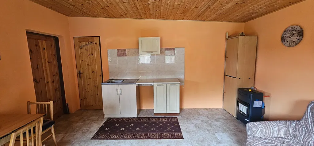 Chata o ploše 20 m² byla postavena před 9 lety a je ideální pro rekreaci a odpočinek v přírodě. Vytápění je zajištěno plynovým ohřívačem, případně je zde možnost vybudování krbu. Voda je čerpána ze studny. Objekt není napojen na elektrickou energii.