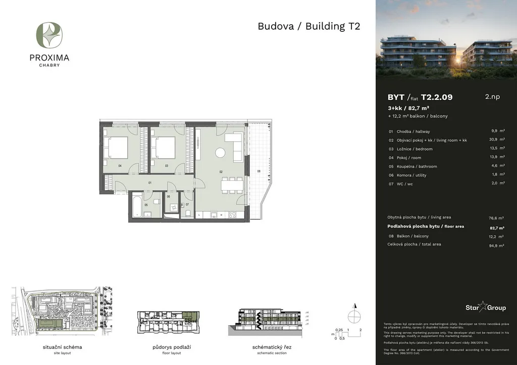 Tento byt 3+kk o velikosti 82,7 m² se nachází v 2. podlaží terasového bytového domu nové etapy Proxima – moderního rezidenčního areálu navazujícího na oblíbené Nové Chabry. Díky velkým oknům, nadstandardnímu prosvětlení a promyšlenému urbanistickému řešení nabízí tento byt prostředí, které si okamžitě zamilujete. V rámci bytu se můžete těšit i na vlastní soukromý balkón o velikosti 12,2 m².