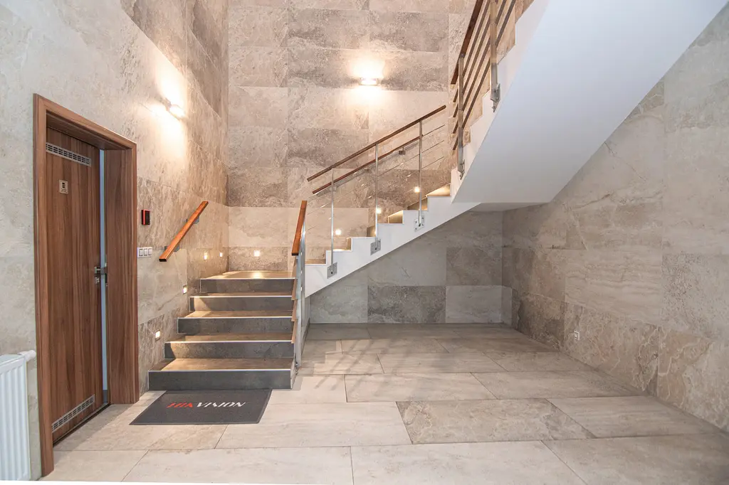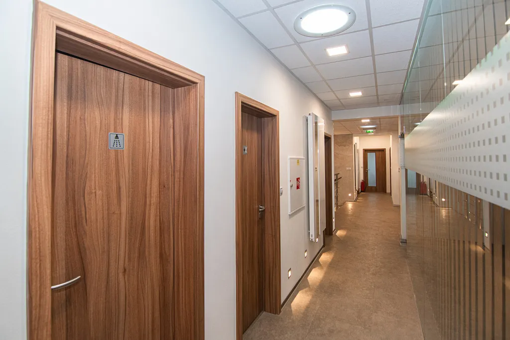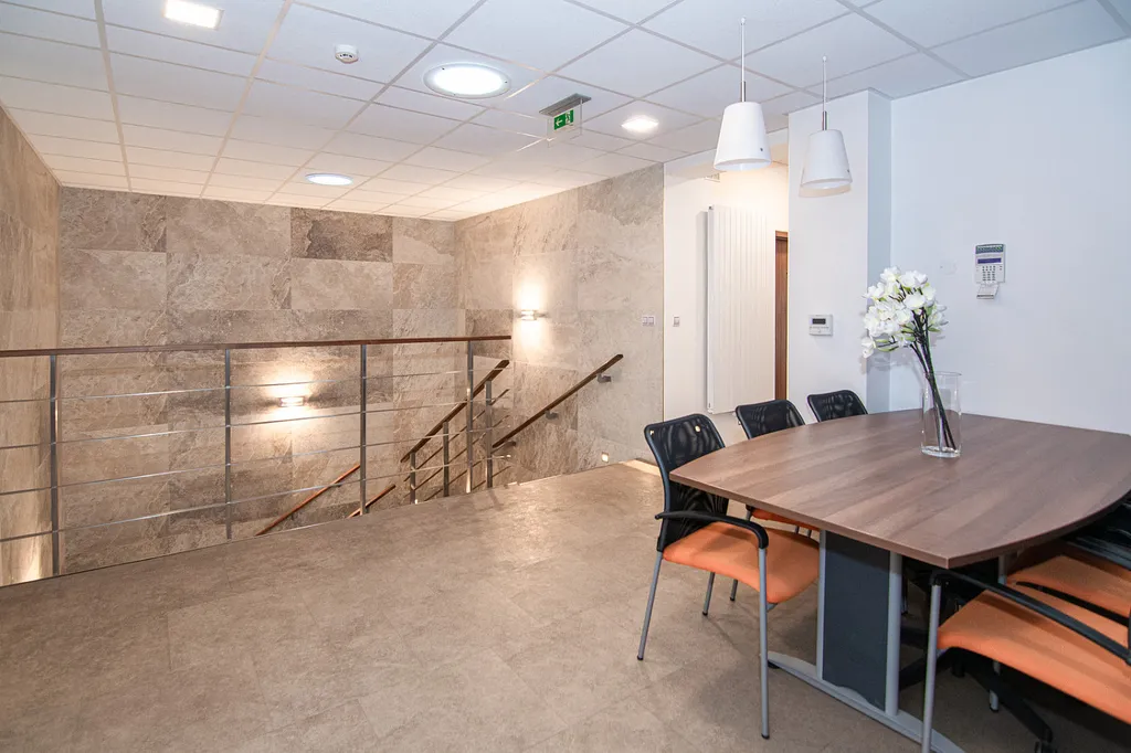 Na stejném podlaží v pravé části budovy má kanceláře firma s klidným chodem.