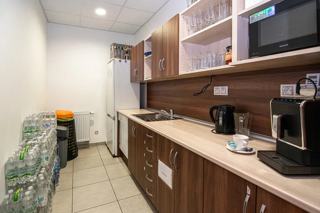 Součástí pronájmu je sdílená kuchyňka, toalety a konferenční místnost s projektorem, kterou je možné po dohodě pronajmout za nízký poplatek.