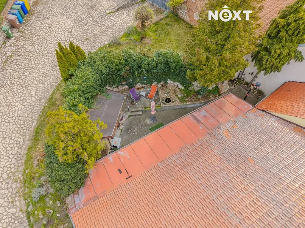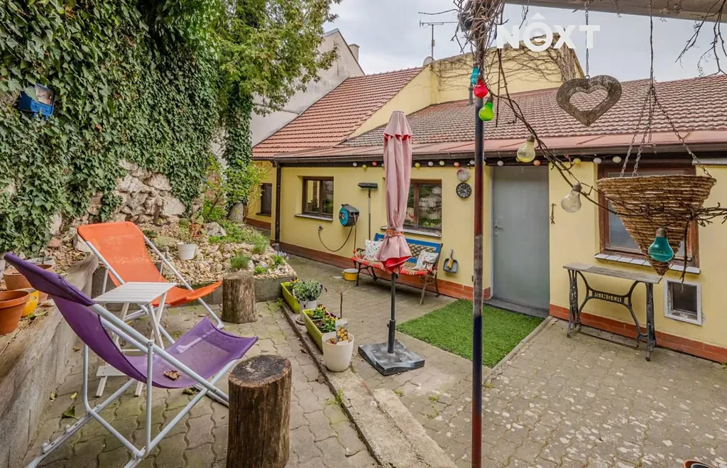 Dům je rohový, přízemní s vinným sklepem a menším udržovaným dvorem, který nabízí dostatek soukromí a možnost posezení a relaxace.