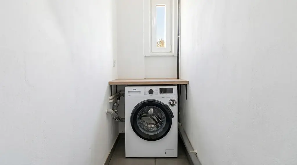 Velkým benefitem bytu je prostorný balkon. Dispozice jsou prakticky uspořádány, kromě dvou prostorných místností a koupelny s WC, je k dispozici i komora, kde je umístěna pračka.