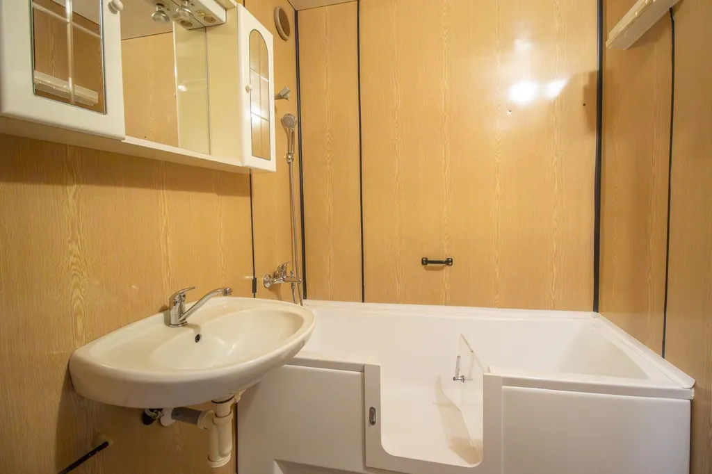 Vnitřní dispozice: Zádveří, prostorná předsíň, kuchyně s vestavěnou spíží. Prostorný obývací pokoj se vstupem na zmíněný zasklený balkon (8,36 m²), který v teplých měsících může sloužit jako další pokoj „pod širým nebem“. Ložnice a další dva samostatné pokoje, které lze spojit v jeden. Koupelna v původním, udržovaném stavu (jádro) se sprchovou vanou, umyvadlem a WC – ideální prostor pro realizaci rekonstrukce dle vlastních představ. Okna již vyměněna za moderní plastová.