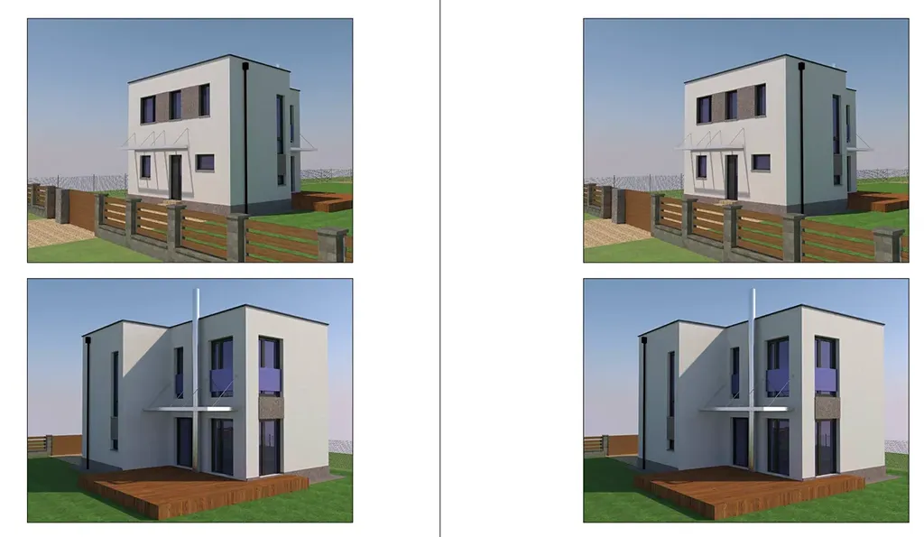 Jedná se o menší dvoupodlažní dům s terasou.