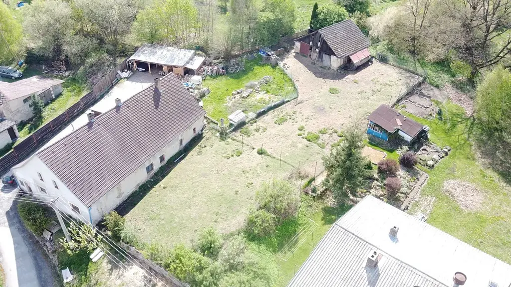 Dům se nachází na vyvýšeném místě s krásným výhledem na náves i okolní krajinu, což zajišťuje příjemné a klidné bydlení v kontaktu s přírodou.