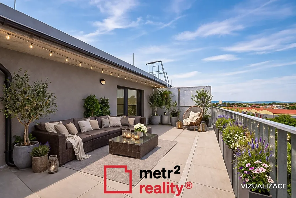 Pronájem bytu 3+kk s prostorným balkonem a terasou v moderní novostavbě cihlového bytového domu ,,B" v Olomouci – Holici na ulici U Solných mlýnů. Byt o výměře 59 m2 + balkón a terasa se nachází v 5.NP domu ,,B" s výtahem a je orientován na jihovýchodní stranu. Bytovou jednotku tvoří předsíň (s možností umístění šatní skříně), obývací pokoj s kuchyňským koutem, dva samostatné pokoje, balkon o výměře 22,88 m2, terasa o výměře 27,92 (na které je vstup ze všech pokojů) a dále koupelna se sprchovým koutem, topným elektrickým žebříkem, toaletou, přípojkou na pračku a možností umístění sušičky. Součástí kuchyňské linky je sklokeramická varná deska, přípojka na myčku, el. trouba a digestoř. Okna jsou osazena trojskly a předokenními žaluziemi na elektrické ovládání. Podlahy v pokojích a v předsíni jsou vinylové, v koupelně dlažba. V celém bytě je podlahové topení, které v letních měsících plní i funkci chlazení. Nájemník má možnost si sám regulovat teplotu v bytě prostřednictvím vlastního termostatu. Vytápění i chlazení bytů zajišťují tepelná čerpadla umístěna v 1. NP domu. Byt je vybaven rekuperací, která slouží k řízené výměně vzduchu ve všech místnostech v bytě. Připojení k vysokorychlostnímu internetu je zajištěno společností ONYX engineering, spol. s.r.o. a nájemník si v případě zájmu hradí sám. Možnost připojení na televizní a rozhlasový signál je pro nájemce zdarma. K bytu náleží samostatná komora v 5.NP domu o výměře 4,36 m2. Možnost pronájmu parkovacího stání v 1. NP domu, mezi prvními v Olomouci možnost nabíjení elektromobilu přes noc přímo na parkovacím stání nájemníka. v domě je také místnost pro umývání kol. Cena je uvedena bez záloh na energie a služby v celkové výši 5.400 Kč / měsíc. Zálohy na energie a služby budou majitelem pravidelně vyúčtovány dle skutečné spotřeby. V blízkém okolí je kompletní občanská vybavenost městské části Holice s množstvím služeb a obchodním centrem Olympia. Lokalita je ve vynikající dopravní dostupnosti jak do centra města, tak k dopravnímu uzlu s napojením na dálnici. Energetická náročnost budovy třída B - velmi úsporný. Byt je k dispozici ihned.