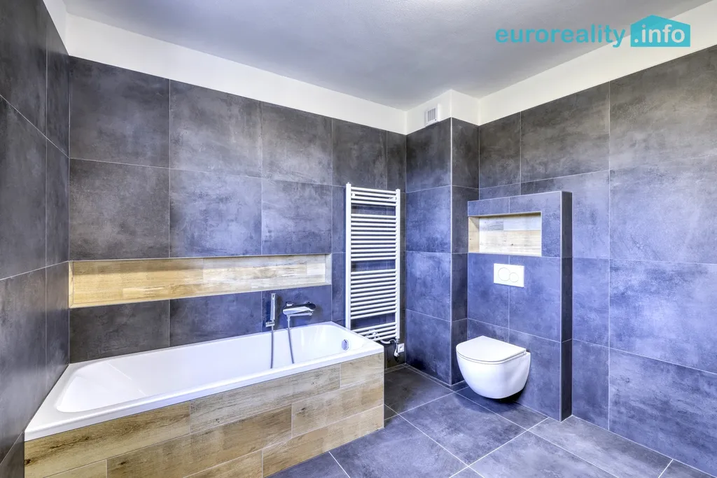 V patře jsou umístěny ložnice a další pokoje, koupelna s toaletou a vstup na horní terasu o ploše cca 18 m², která nabízí příjemný prostor pro relaxaci.