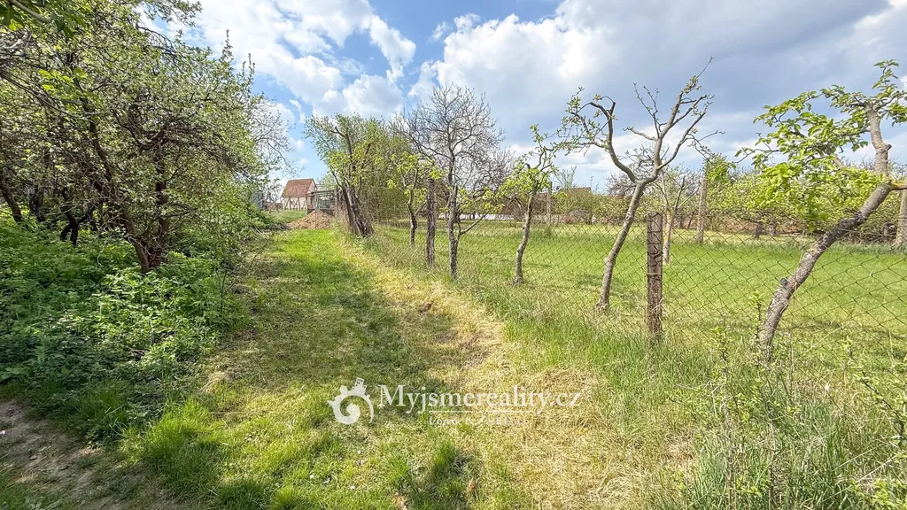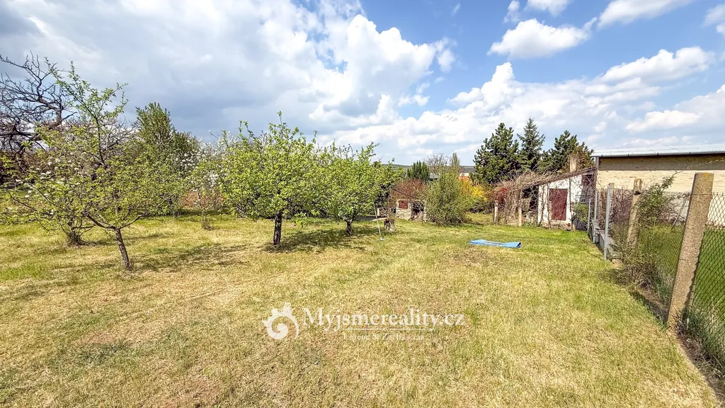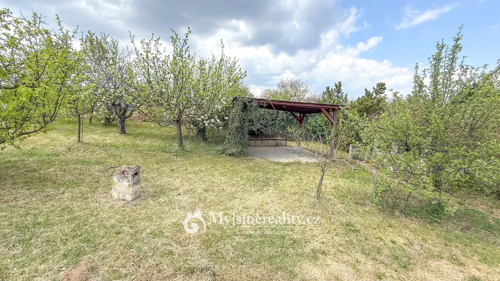 Dominantou pozemku je prostorná pergola, která nabízí ideální zázemí pro posezení s rodinou či přáteli – ať už při letním grilování, nebo klidném odpočinku. Součástí je také podsklepená cihlová chata o velikosti 24 m² a samostatná hospodářská stavba (6 m²), vhodná jako dílna či úložný prostor.