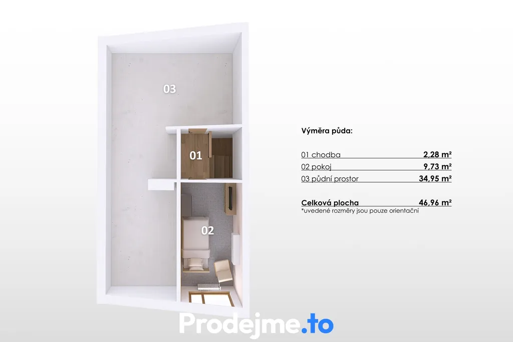 V podkroví je ještě dětský pokoj a vstup na půdu, kam snadno odložíte sezónní věci.
