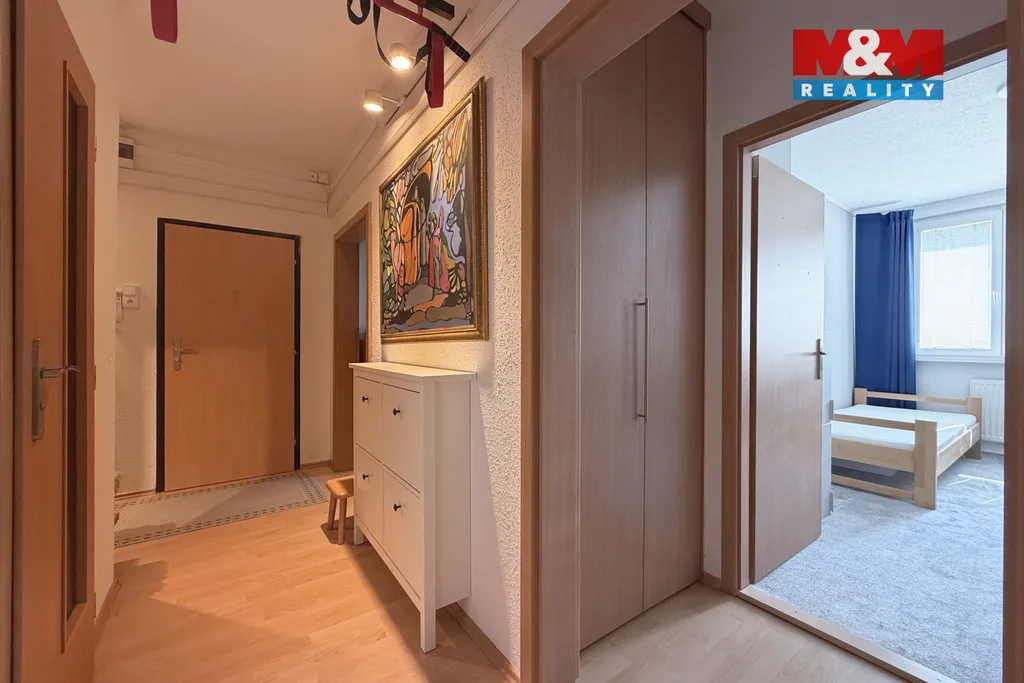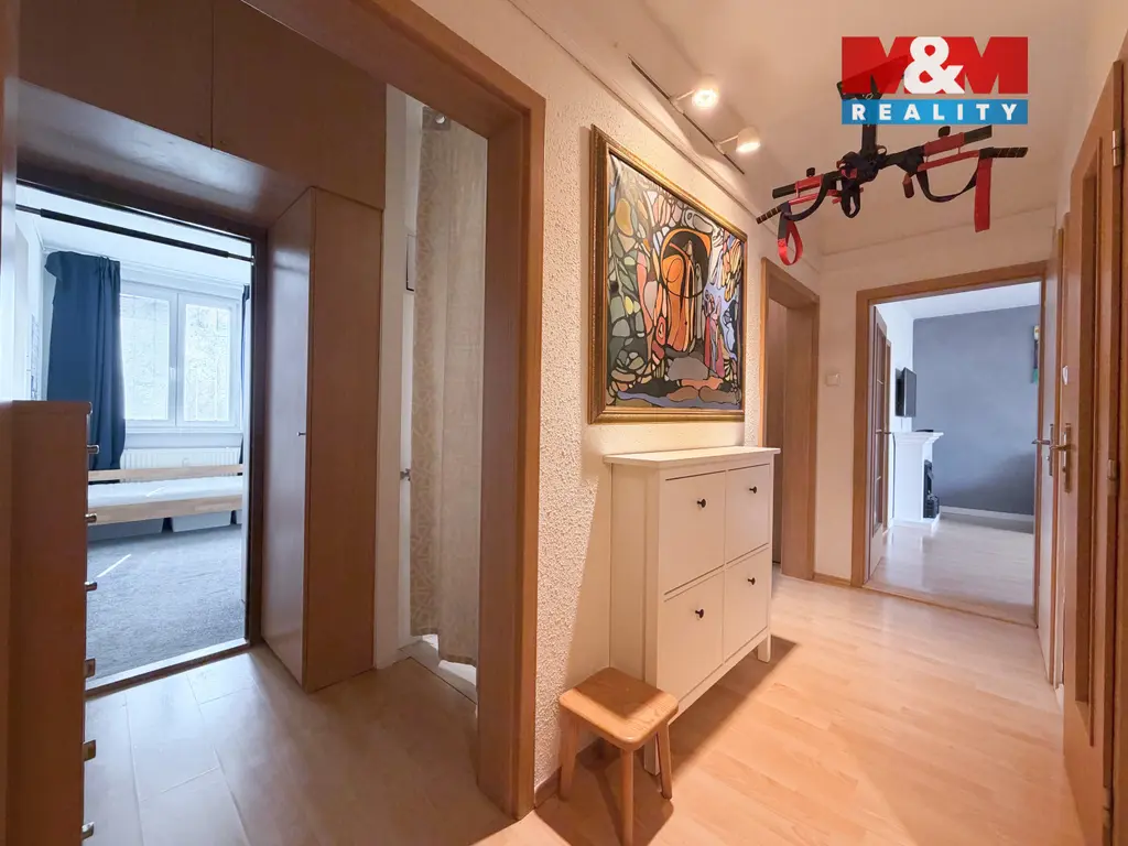 Nabízíme k prodeji prostorný a velmi dobře dispozičně řešený byt 4+1 o užitné ploše 79 m², který se nachází v 1. nadzemním podlaží udržovaného panelového domu s výtahem v klidné části sídliště s dostatkem zeleně. Dispozice bytu nabízí tři samostatné neprůchozí pokoje, obývací pokoj, kuchyni, lodžii a sklep. Byt působí velmi příjemným a udržovaným dojmem. V obývacím pokoji je umístěna vestavěná knihovna a elektrický krb, které dotváří útulnou atmosféru, a v chodbě se nachází praktické vestavěné skříně poskytující dostatek úložného prostoru. Dům je pravidelně udržovaný a obyvatelům je k dispozici také kolárna. Lokalita je vyhledávaná především díky klidnému prostředí a výborné dostupnosti služeb. V bezprostřední blízkosti se nachází školy, školky, obchody, lékaři i zastávky MHD.
