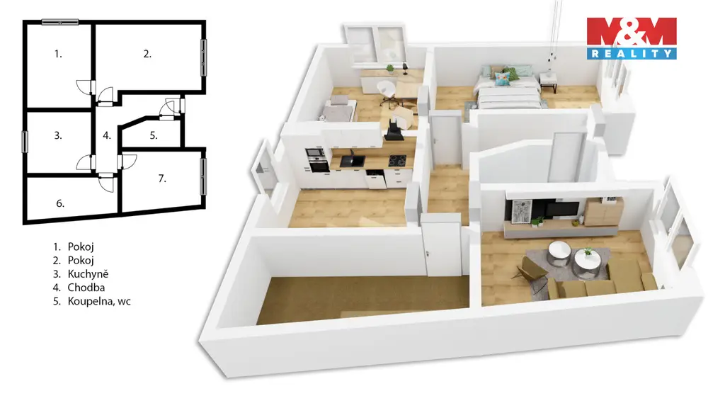 Byt se nachází ve 3. nadzemním podlaží cihlového domu a nabízí prakticky řešenou dispozici s dostatkem denního světla. Nemovitost je v původním stavu, což novému majiteli umožňuje rekonstrukci dle vlastních představ a vytvoření bydlení přesně na míru.