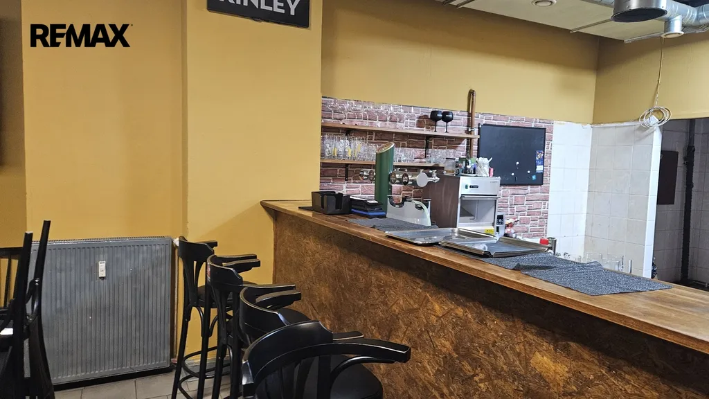 Dispozice - vstupní místnost k sezení, barový pult k sezení a osazený výčepní stolicí, sklad, WC pro hosty a personál . V těchto prostorech není podmínkou provozovat dále restauraci, majitel by preferoval i jinou podnikatelskou činnost jako- cukrárnu, kavárnu, pekárnu, vinotéku nebo případně využít jako skladovací prostory.