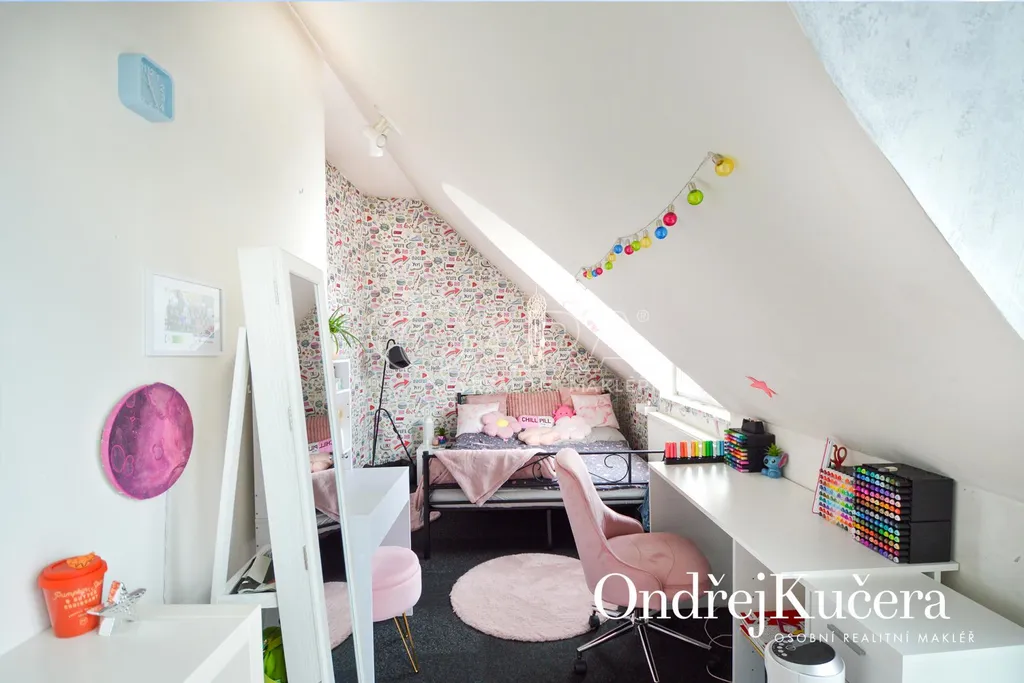 V přízemí je prostorný ateliér o rozloze 125 m², ideální pro galerii, showroom či kancelářské prostory. V prvním patře je světlý a prostorný byt 2+kk o ploše 97 m², přístupný točitým schodištěm z přízemí, což zajišťuje jedinečné propojení pracovního a soukromého prostoru. Vhodné také na investici, protože momentálně je dům obsazen dobrými nájemníky.