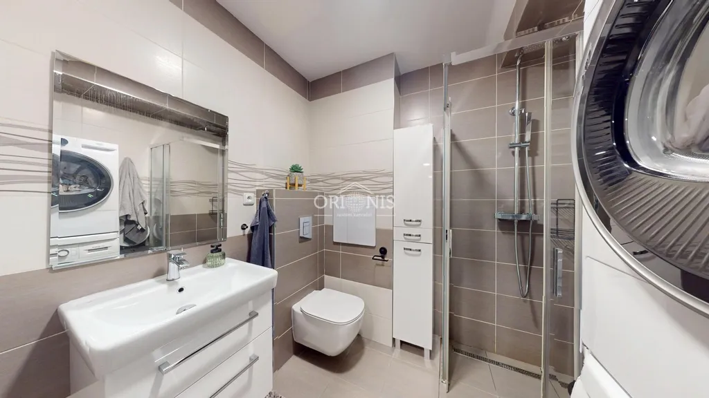 Zařízení (částečné): kuchyňská linka, lednice, myčka, sprchový kout, toaleta, umyvadlo, pračka, postel, šatní skříň