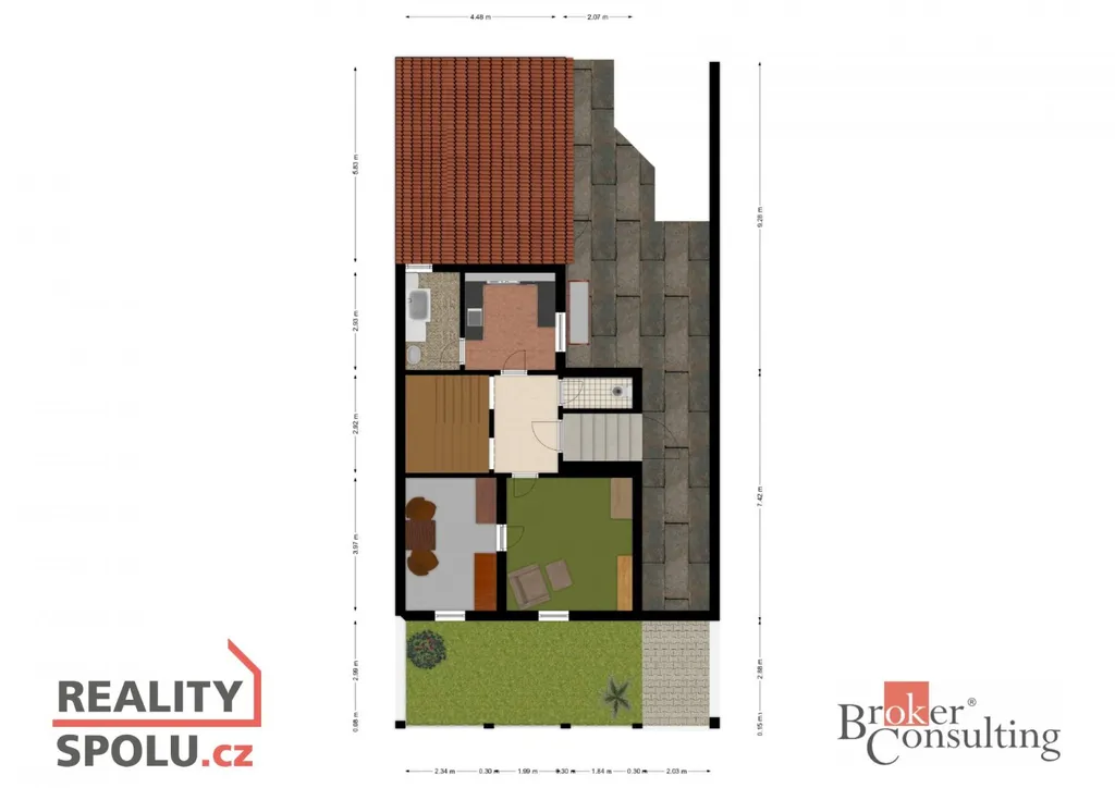 Součástí domu je také prostorný sklep o rozměru 20 m2.