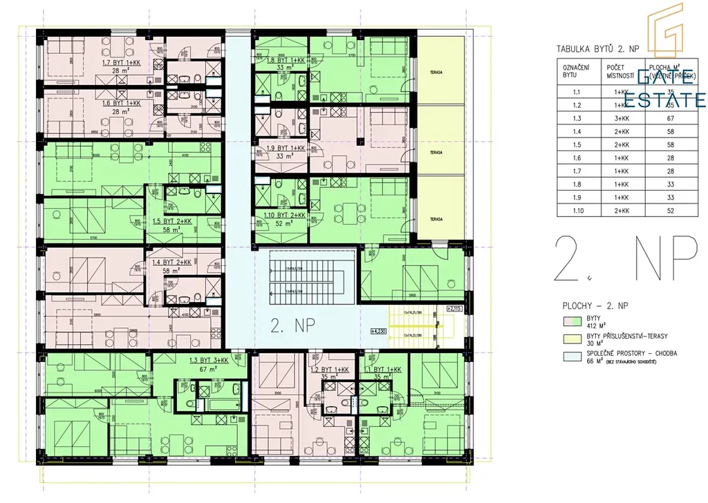 V tomto inzerátu uvádím 2kk, 53m2 + terasa 9,9m2 (+ sklep), umístěný v 2NP. Byt je vybavený kuchyňskou linkou na míru vč. spotřebičů výše uvedených. V barevném půdorysu, který uvádíme ve fotografiích, se jedná o byt č. 1.10.