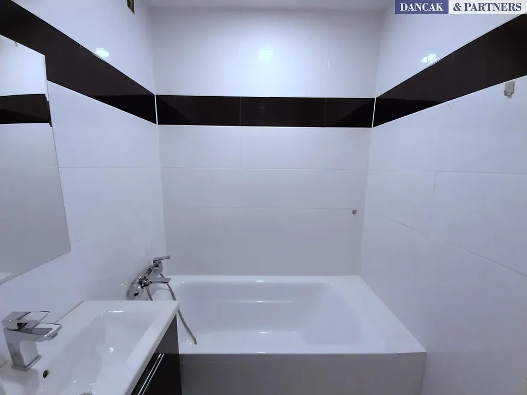 Součástí bytu je nová rohová kuchyňská linka vybavená elektrickým sporákem, indukční varnou deskou, digestoří a lednicí s mrazákem. Koupelna disponuje vanou, umyvadlem a moderními keramickými obklady, toaleta je samostatná. V pokojích nové dveře, svítidla, plovoucí podlahy, v předsíni a koupelně velkoformátová dlažba.