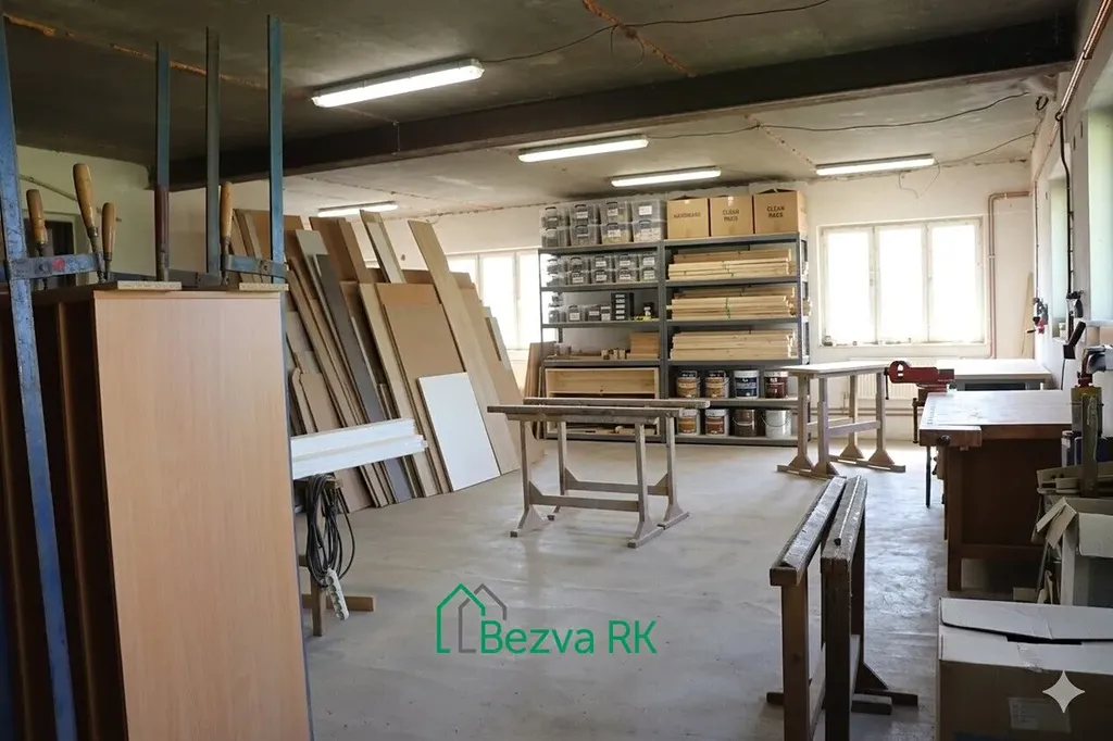 Přízemí: 532 m² – truhlářská dílna, kanceláře, kuchyňský kout, skladovací prostory, sociální zázemí