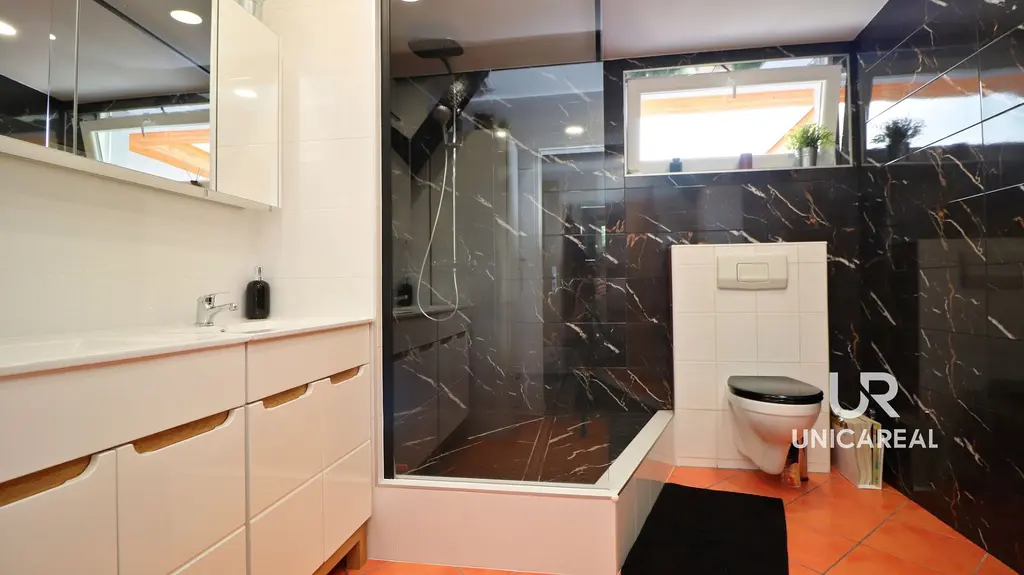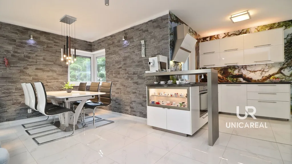 • Jedná se o bezbariérový dům 4+kk o velikosti 125m² s moderním vybavením a dominantním obývacím pokojem + . prosklené, vyhřívané wellness zázemí o užitné ploše 74m² . V hlavní ložnici s výhledem do zahrady je šatna a koupelna s parním boxem. Dům má ještě druhou prostornou a designovou koupelnu a technickou místnost kde je instalován střídač a baterie na výkonnou fotovoltaickou elektrárnu.