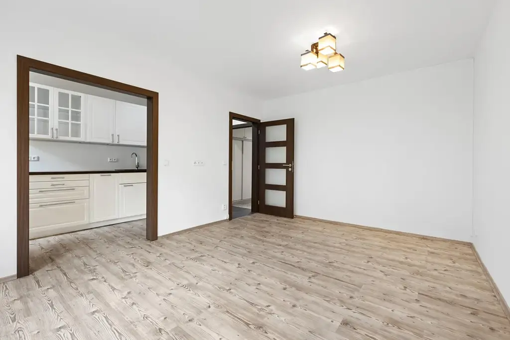 Dispozice nabízí prostorný obývací pokoj, samostatnou kuchyň s oknem a koupelnu s WC, která má rovněž své okno což je u tohoto typu bytů velmi výjimečné. Zvětšená koupelna disponuje masážní vanou. Významným bonusem je samostatná šatna v předsíni, druhá menší šatna je navíc v ložnici.