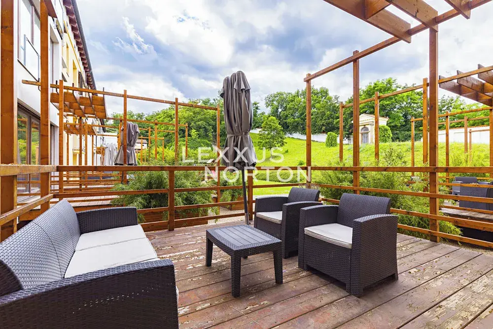 Nabízíme k pronájmu zařízený byt 2+kk o velikosti 47 m² s terasou, situovaný v přízemí rezidenčního komplexu Císařský Mlýn s výtahem, fitness, saunou a podzemní garáží. Nemovitost se nachází v atraktivní lokalitě Prahy 6 - Bubeneč v těsné blízkosti tenisových kurtů Královské obory Stromovka.