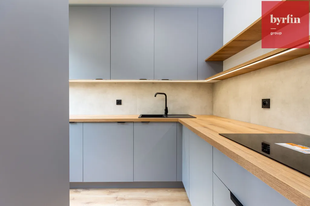 Byt se nachází ve 2. patře revitalizovaného domu s výtahem a zaujme nejen vysokým standardem rekonstrukce, ale především tím, jak promyšleně je využit celý prostor. Moderní materiály, kuchyně na míru, vestavné spotřebiče, ambientní osvětlení, dostatek úložných prostor i prostorná šatna ve vstupní chodbě vytvářejí bydlení, které působí výrazně větším a komfortnějším dojmem, než napovídá samotná výměra.