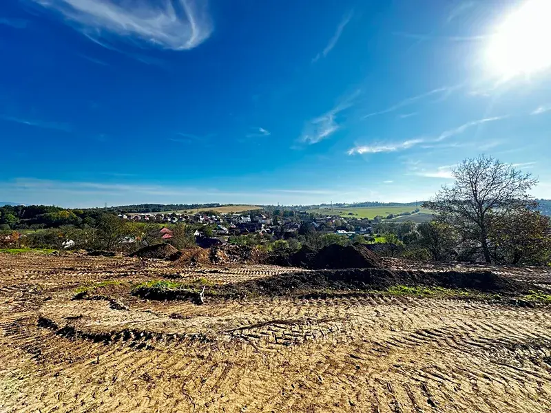 K pozemkům budou přivedené inženýrské sítě (obecní vodovod, elektřina, trativod kanalizace pro ČOV).