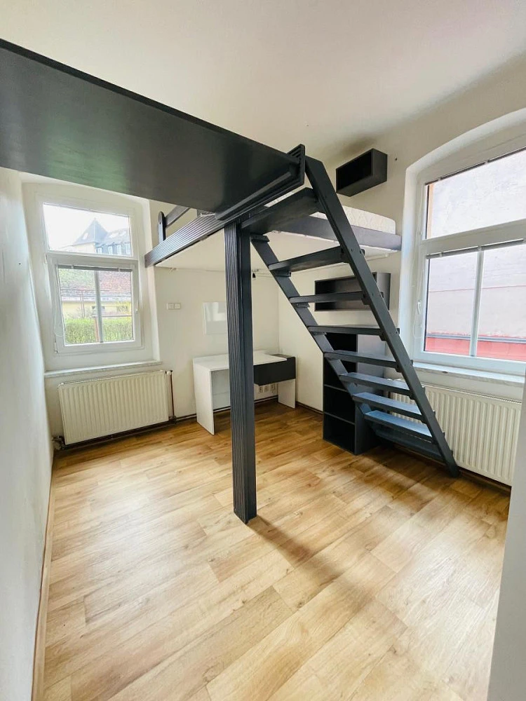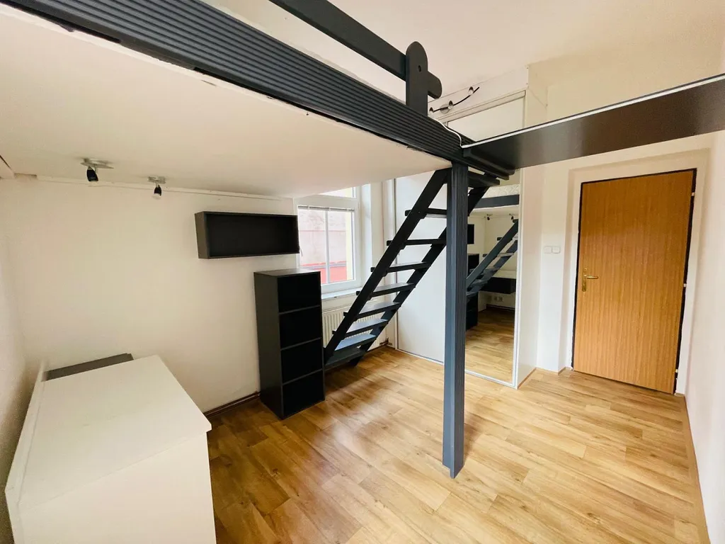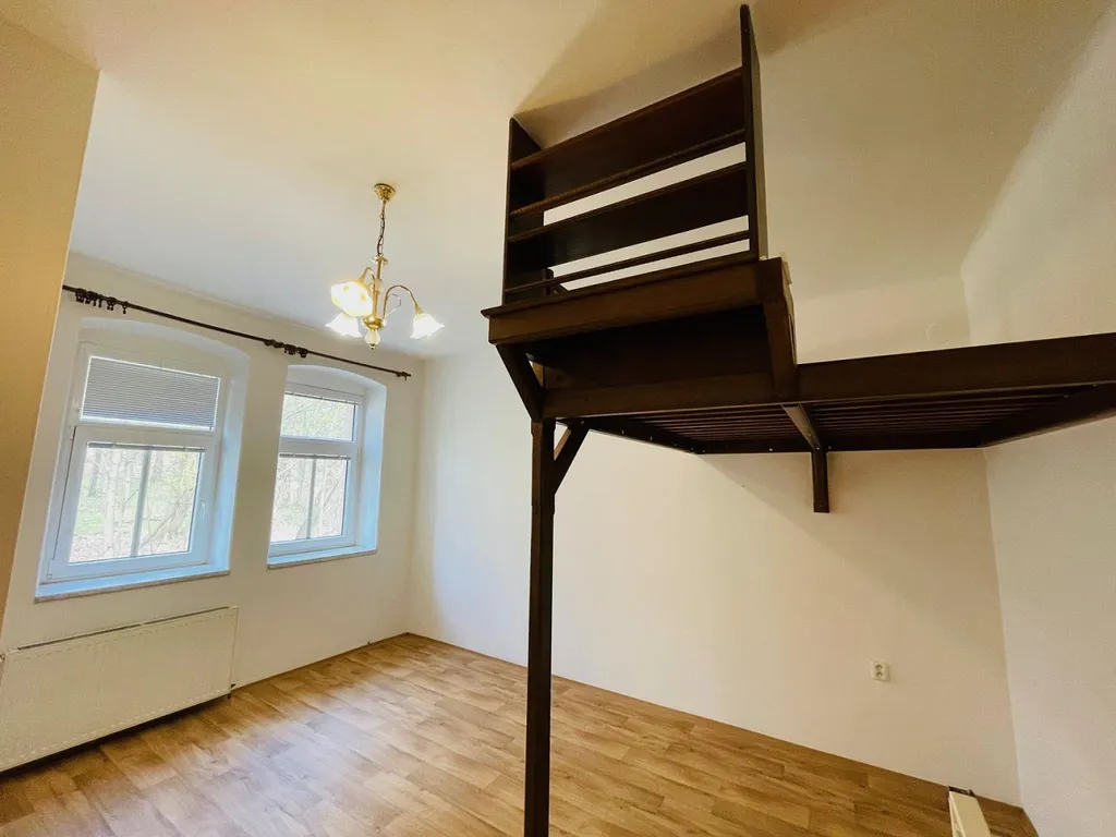 v ložnici s šatnou je patrová postel , kterou lze na přání nájemníka demontovat a odstranit