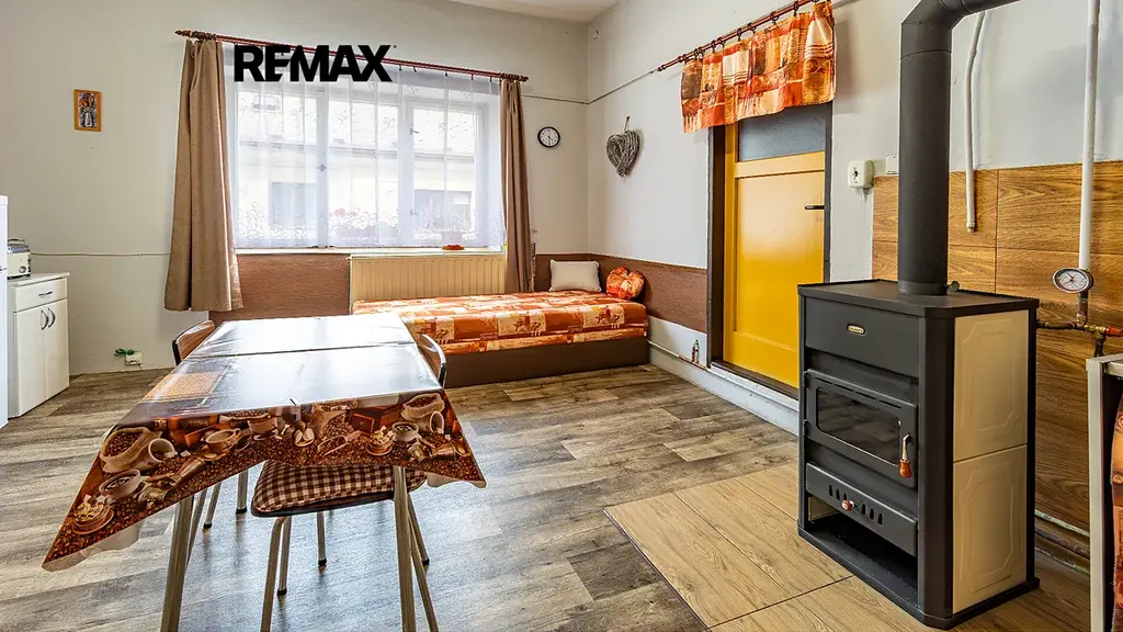 Vytápění zajišťují nová krbová kamna s výměníkem (instalace v roce 2025), ohřev vody je řešen bojlerem. V domě je zavedená elektřina a k dispozici je i plynová přípojka ve spodním patře. Součástí domu je půda (220m2), kterou lze využívat společně s ostatními vlastníky.