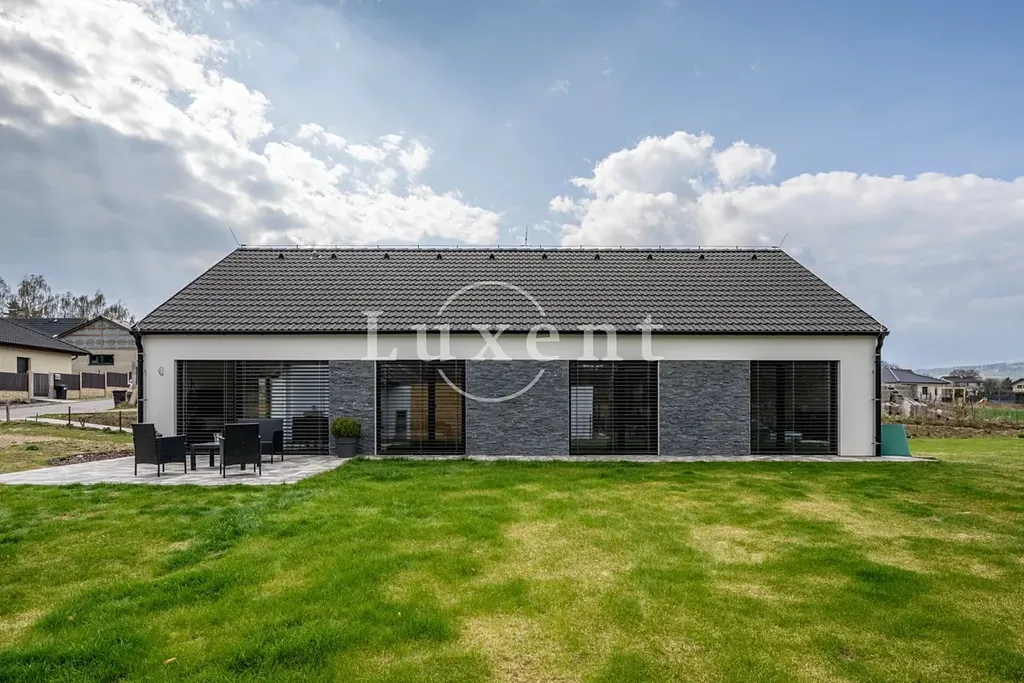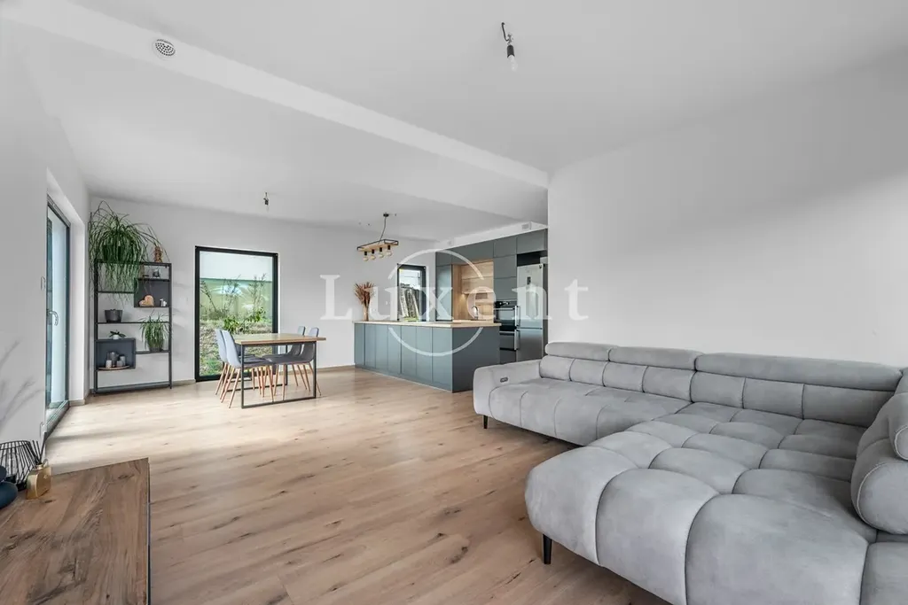 Dům o dispozici 4+kk a užitné ploše 112 m² nabízí prakticky řešený a vzdušný interiér s důrazem na komfort rodinného bydlení. Hlavní obytný prostor je propojen s kuchyňským koutem a umožňuje přímý vstup na zahradu o celkové výměře 948 m², která poskytuje dostatek soukromí i prostoru pro relaxaci, rodinné aktivity nebo další úpravy dle vlastních představ.