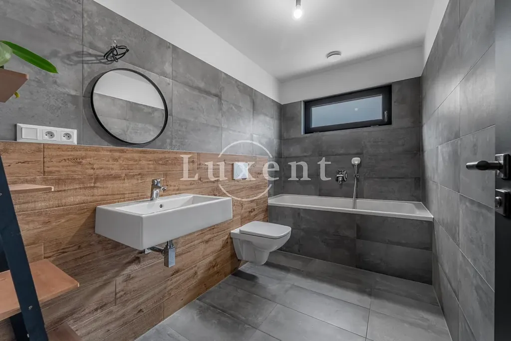 Nemovitost je dokončena v základním standardu, přičemž součástí jsou hotové podlahy, koupelny, kuchyňská linka i venkovní žaluzie, což umožňuje okamžité užívání s možností doladění detailů podle individuálních preferencí nového majitele. O moderní a úsporný provoz domu se stará tepelné čerpadlo v kombinaci s rekuperací, které zajišťují nízké provozní náklady a zároveň zdravé a komfortní vnitřní prostředí po celý rok.