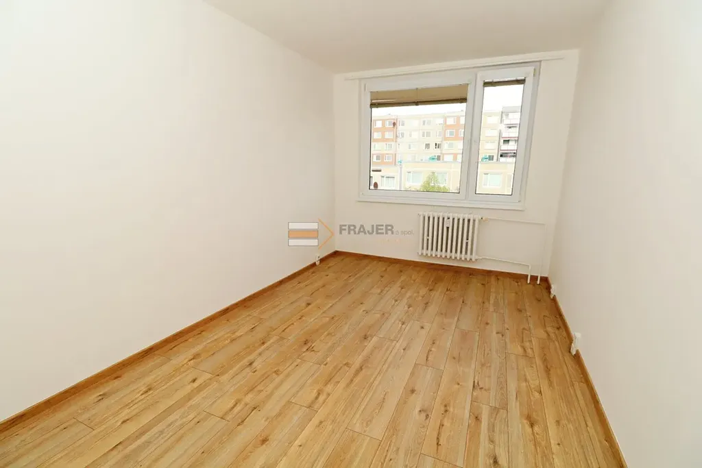 V bytě se nachází kuchyně s jídelnou (nová kuchyňská linka, plynová varná deska, nová myčka, chladnička s mrazničkou, jídelní stůl a židle, aj.), obývací pokoj (19 m2), zasklená lodžie (cca 7 m2), tři pokoje (12 m2, 8 m2 a 8 m2), sociální zařízení (koupelna s vanou a WC) a velká předsíň (věšák a botník). Pokoje jsou orientované na východní a na západní stranu.