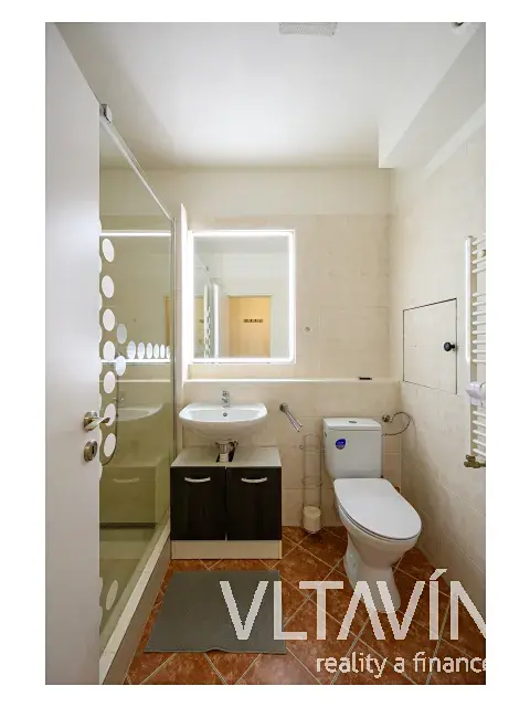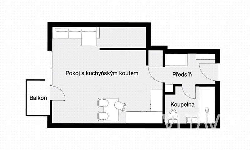 Bytová jednotka (39 m2) sestává ze vstupní chodby s úložnými prostory, z obývacího pokoje s plně vybaveným kuchyňským koutem a vstupem na balkón (2 m2) s příjemným výhledem. Byt dále tvoří koupelna se sprchovým koutem a toaletou.