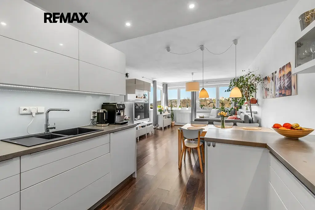 Bydlet 5 minut vycházkovou chůzí od náměstí Republiky a mít z každého okna bytu výhled jako na venkově? Je opravdu ojedinělé, ale je to možné. A Vy máte právě teď tu jedinečnou možnost si takový byt pořídit. Je to splněný sen o skvělé dispozici, nádherném výhledu, zajištěném parkování a potřebě mít vše důležité opravdu nablízku. Předmětem prodeje je bytová jednotka 4+kk s prostorným balkónem, jedním parkovacím stáním v přízemí domu a sklepní kójí na patře. Pokud by Vám nestačilo jedno parkovací stání, dá se jednat i o odprodeji druhého (sousedního) za cenu 650.000,- Kč. Samotný byt se nachází ve 3. NP (druhém patře) novostavby kolaudované v roce 2016. Jeho podlahová plocha je velkorysých cca 105 m2 plus balkón a sklepní kóje. Celková výměra bytu tak čítá cca 118 m2. Co Vás rozhodně nadchne je jeho dispozice. V předsíni hned za vstupními dveřmi najdete praktickou místnost takzvaně na cokoliv, která aktuálně slouží jako prádelna a sklad. Koupelna a WC, byť jsou z předsíně přístupné jen přes jedny dveře, jsou fakticky dva oddělené prostory, kde navíc v koupelně najdete jak vanu, tak sprchový kout. A to jsme jen v předsíni. To nejlepší se Vám nabídne po otevření dveří do obývacího pokoje. Ta světlost, prostor a výhled... Doslova návyková záležitost.