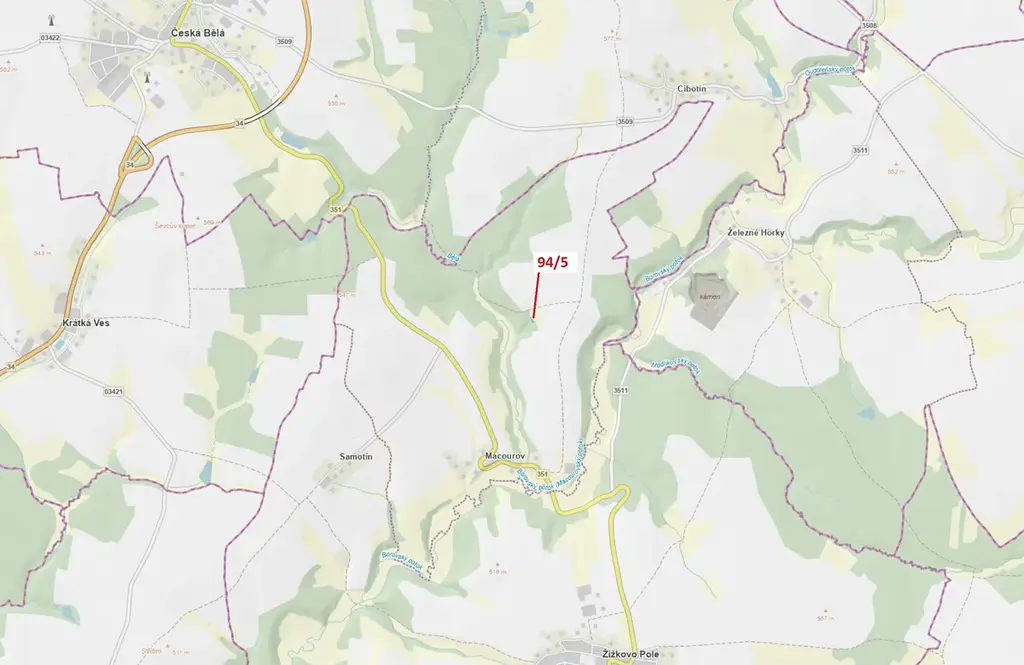 Lesní pozemek o výměře 119 m2, parcelní číslo 94/5, podíl 1/1, katastrální území Macourov, obec Žižkovo Pole, obec s rozšířenou působností Havlíčkův Brod, okres Havlíčkův Brod, Kraj Vysočina.