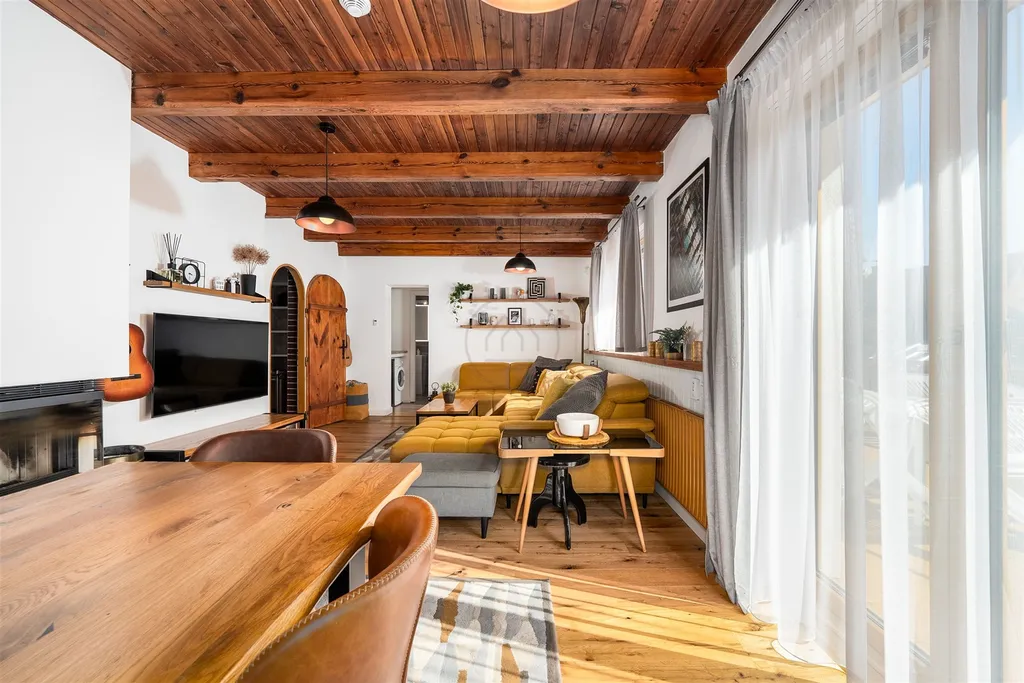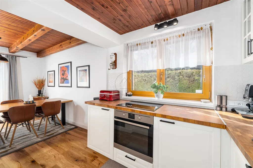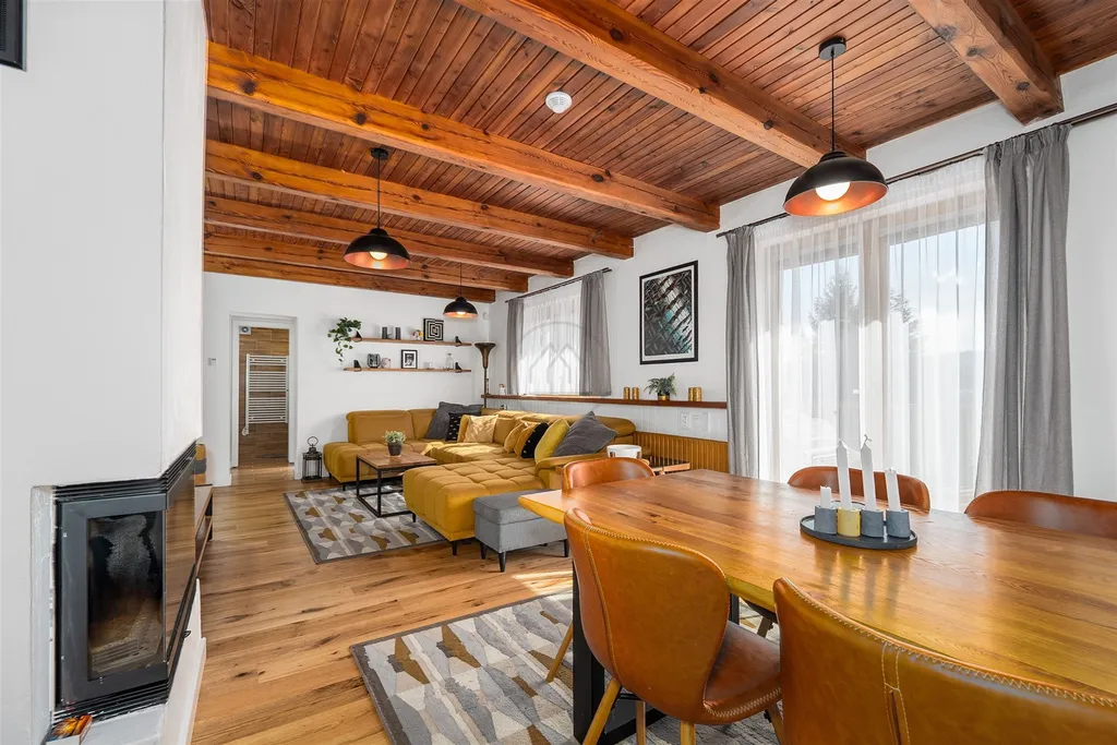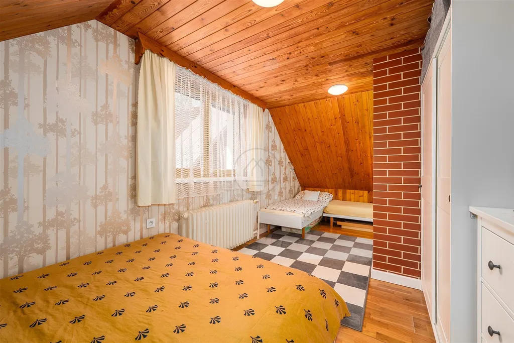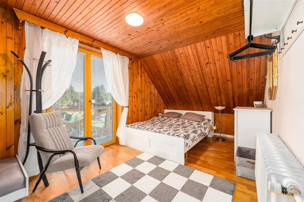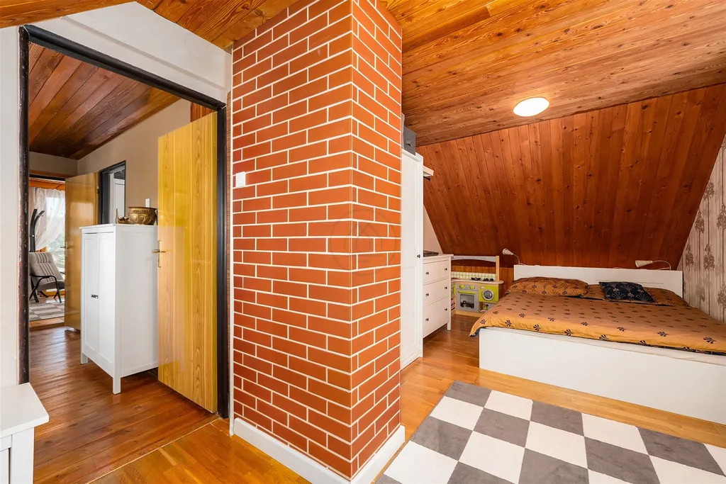 Dvoupodlažní objekt o dispozici 4+kk nabízí útulné zázemí pro rodinnou rekreaci, ale také zajímavý potenciál pro budoucí pronájem. V přízemí vás přivítá prostorné zádveří, technická místnost a dvě koupelny. Hlavní obytný prostor tvoří světlý obývací pokoj s kuchyňským a jídelním koutem, odkud je vstup na prostornou podsklepenou terasu a zahradu s výhledem do klidné zeleně a průhledem na vodu. Podkroví disponuje balkonem a třemi ložnicemi s dostatkem prostoru pro rodinu i hosty.