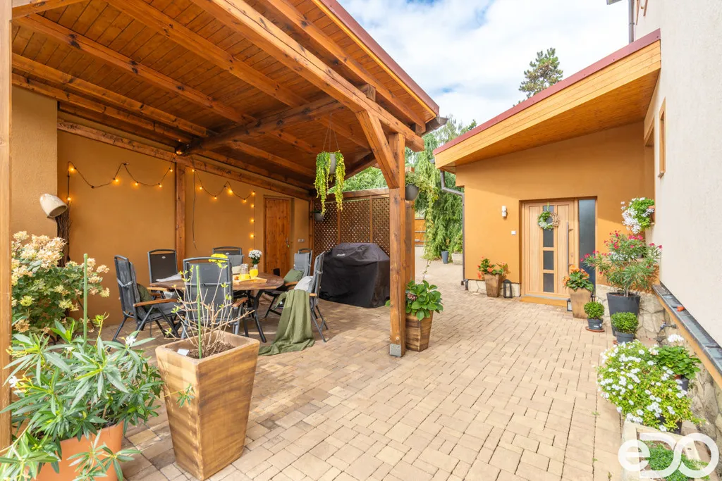 Celková plocha parcely činí 654m², což poskytuje dostatek prostoru pro vaše děti, aby si mohly hrát venku a pro vás, abyste si mohli vychutnat čas strávený s rodinou. Na zahradě je prostorná pergola, krytý bazén a zahradní domek. Zahrada je ve velmi pěkném a udržovaném stavu a poskytuje maximální soukromí.