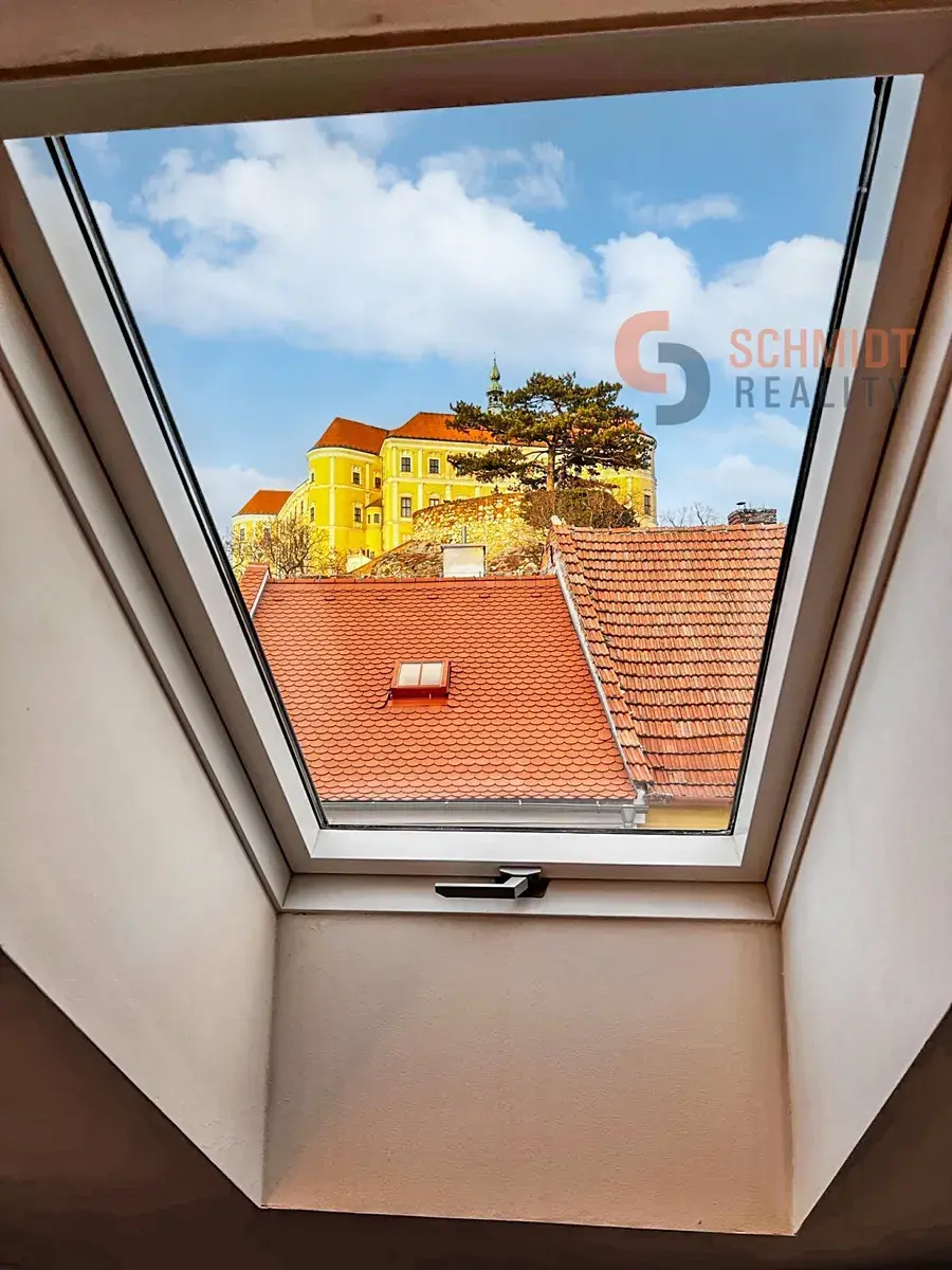 V centru Mikulova, v malebném podzámčí na ulici Alfonse Muchy, se nachází byt v osobním vlastnictví 1+kk situovaný ve 3. nadzemním podlaží renesančního bytového domu. Výměra: 29,62 m2.