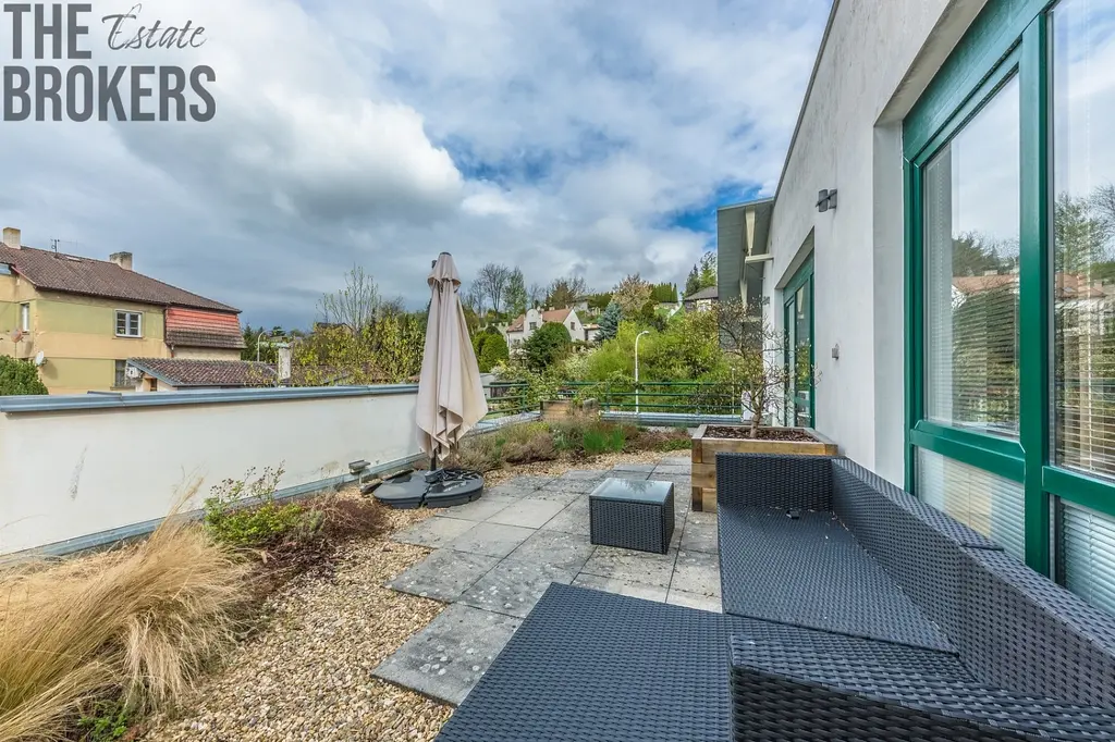 Velkým benefitem je venkovní prostor. K dispozici je terasa pro posezení nebo neformální schůzky a zároveň zahrada, kde je možné grilovat nebo trávit čas mimo pracovní prostředí. To je přesně ten detail, který z kanceláře dělá místo, kde lidé chtějí být.