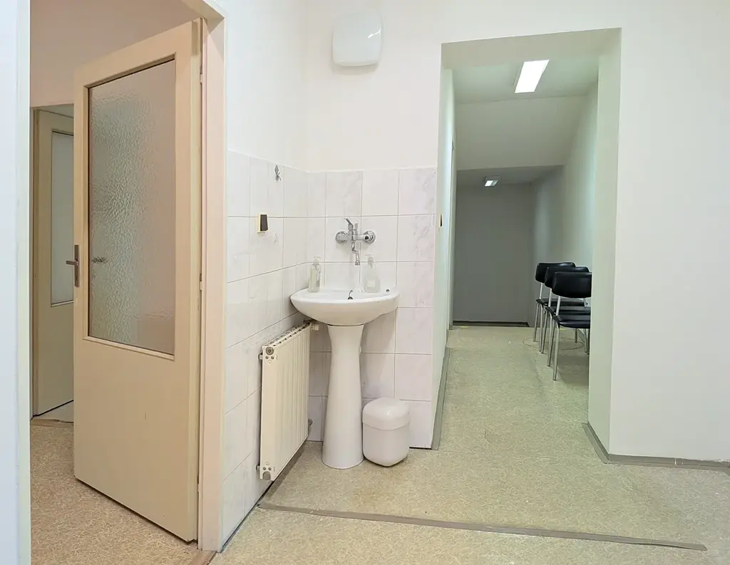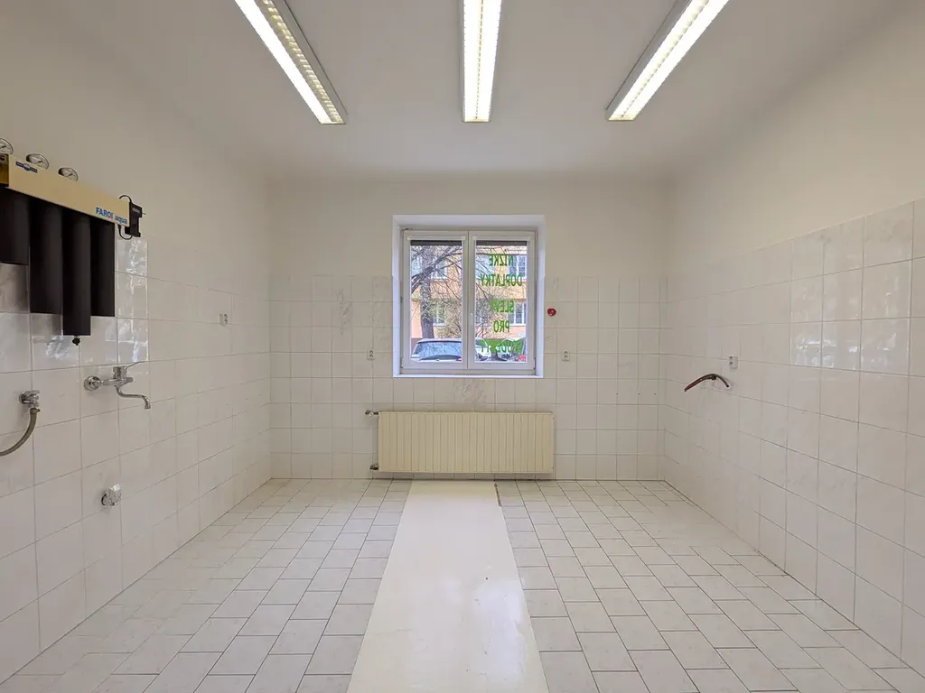 Prostory mají také druhý vstup z chodby domu, což usnadňuje logistiku nebo zásobování.