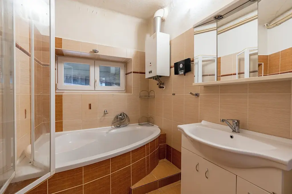 Okna a dveře jsou plastová. Vytápění obou bytových jednotek je řešeno pomocí plynnového kondenzačního kotle.