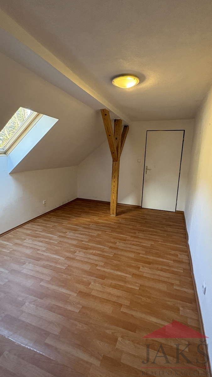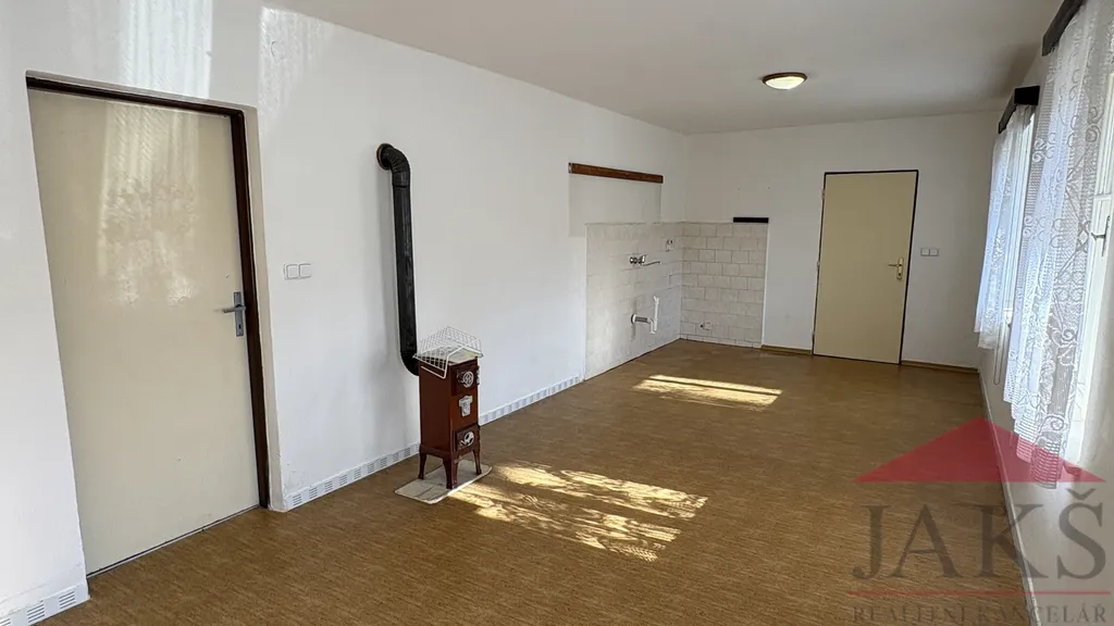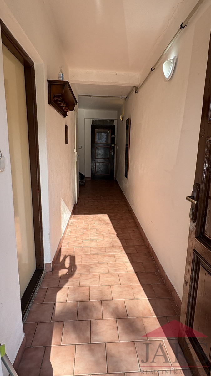 Popis: 1.NP: chodba se vstupem na zahradu a schodištěm do 2.NP, koupelna (WC, umyv., el. boiler, vývody na pračku), průchozí kuchyně s jídelnou (nová kuch. linka s el. sporákem) a kamny, obývací pokoj s kamny, 2.NP: podesta, koupelna (sprch. kout a umyv.), podkrovní hlavní ložnice, 3x průchozí ložnice a velký slunný balkon s úžasným 180º rozhledem a západním sluníčkem.