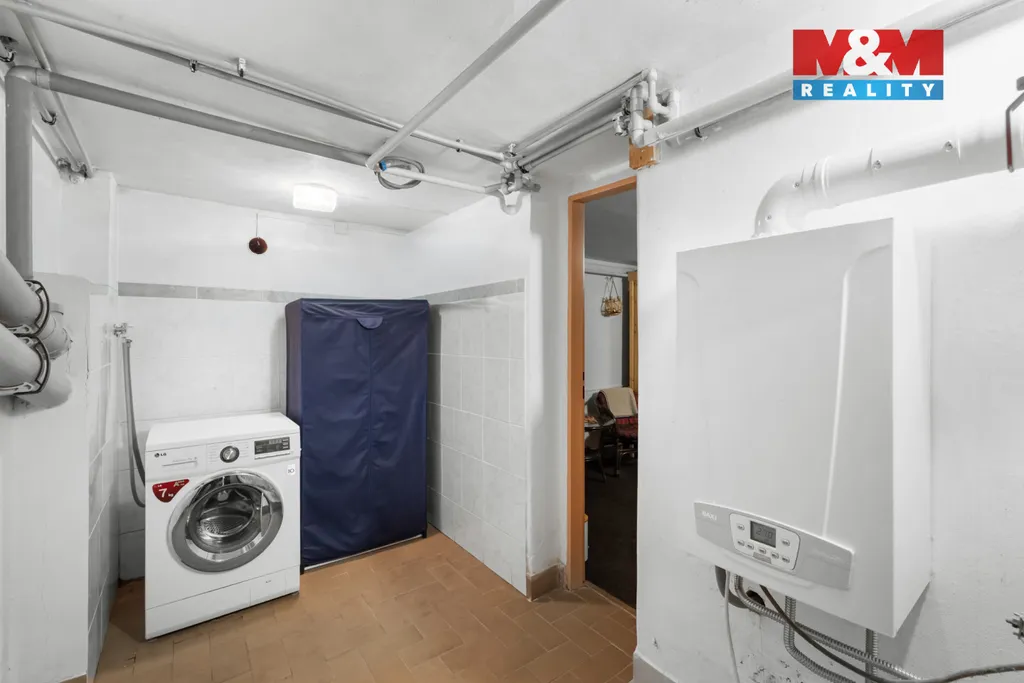 Díky umístění domu ve svahu je suterén přirozeně přístupný ze zahrady a nabízí široké možnosti využití. Najdete zde další obytný pokoj i prostornou místnost vhodnou jako posilovna, pracovna, herna nebo zázemí pro podnikání. Nechybí ani sauna pro relaxaci a dostatek úložných prostor.