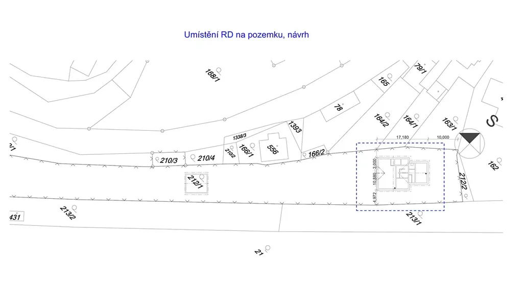 Významnou výhodou je již zpracovaný projekt na výstavbu rodinného domu o celkové podlahové ploše 273 m², rozděleného na dvě bytové jednotky (5+kk a 3+kk) s odděleně stojící garáží. Projekt není podmínkou prodeje – budoucí vlastník může realizovat stavbu dle vlastních představ, nicméně představuje zajímavou úsporu času i nákladů na projektovou přípravu.