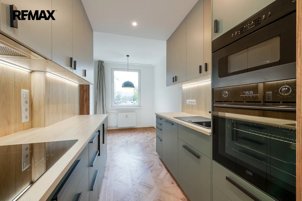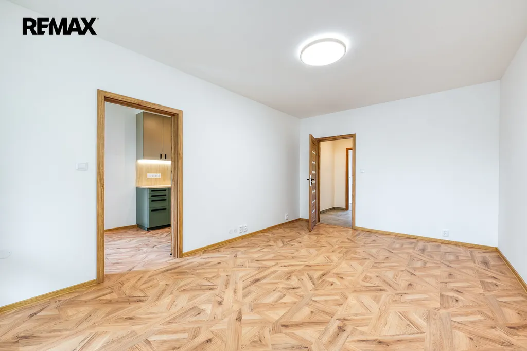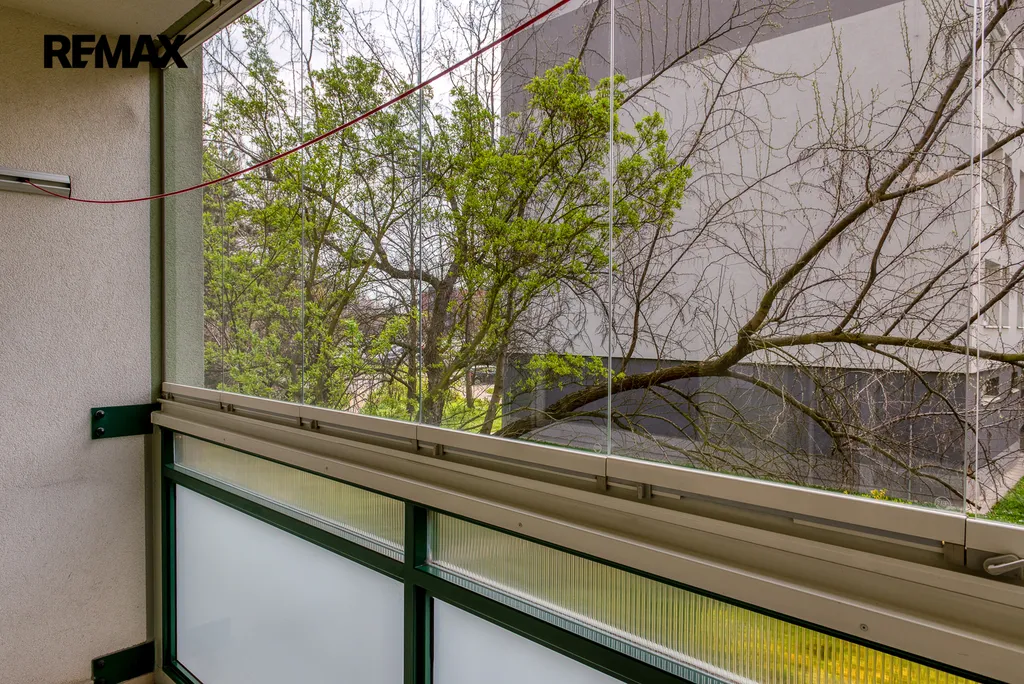 Byt je po kompletní rekonstrukci za použití kvalitních materiálů a spotřebičů a je připraven k okamžitému nastěhování. Užitná plocha je zde 65 m² + zasklená lodžie 5,5 m² a sklep 1,5 m². Dispozice nabízí tři neprůchozí pokoje a samostatnou kuchyň s prostorem pro jídelní stůl, dále předsíň, koupelnu a samostatné WC. K bytu náleží lodžie a sklepní kóje. Z pokojů jsou příjemné výhledy do zeleně.