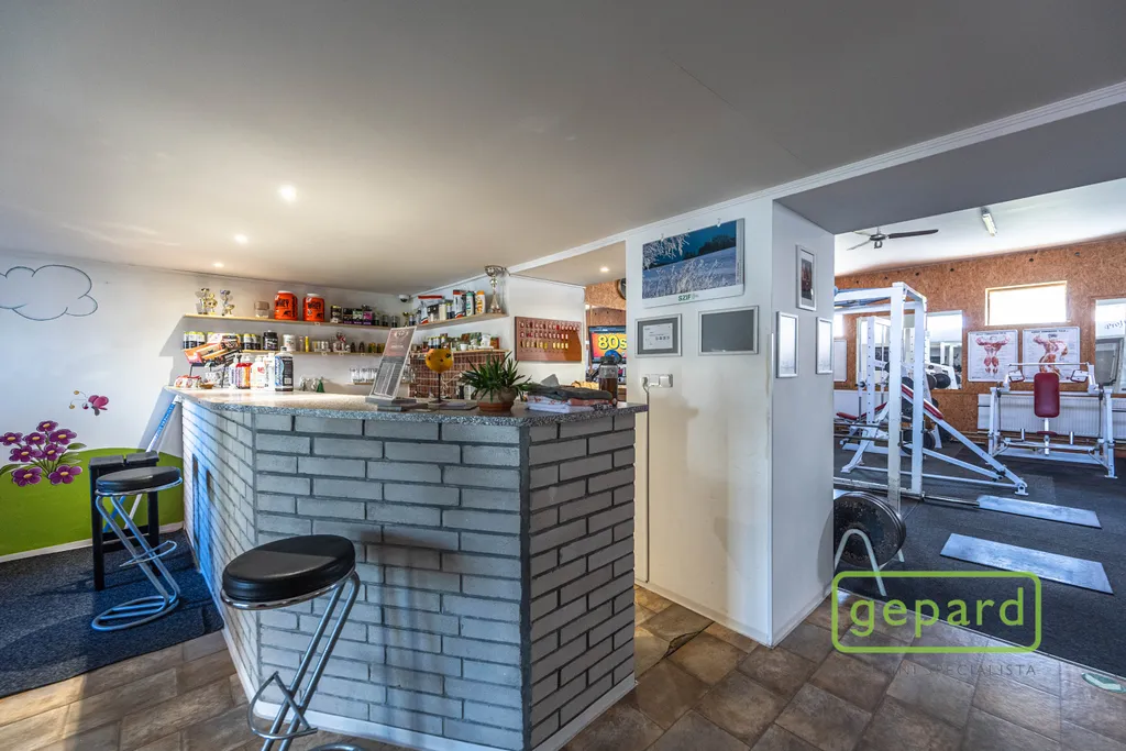 Fitcentrum o ploše 357,13 m² je rozloženo do dvou nadzemních podlaží a disponuje kompletním zázemím (šatny, sprchy, toalety). Vytápění a ohřev vody zajišťuje plynový kotel. Nový majitel může v zavedeném provozu pokračovat nebo prostor přizpůsobit vlastním potřebám (wellness, studio, kanceláře apod.).