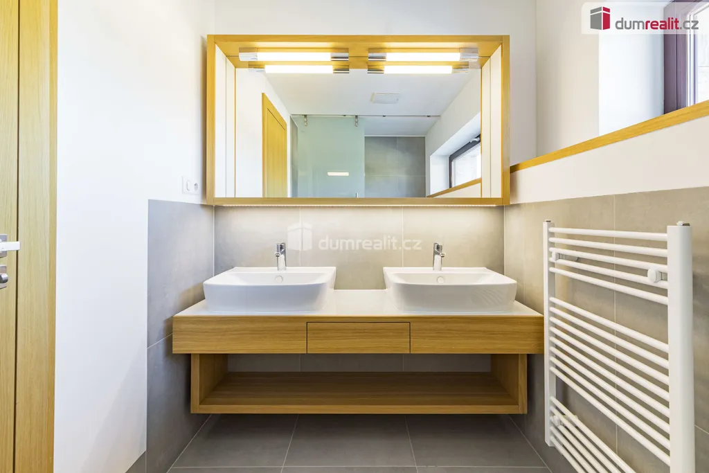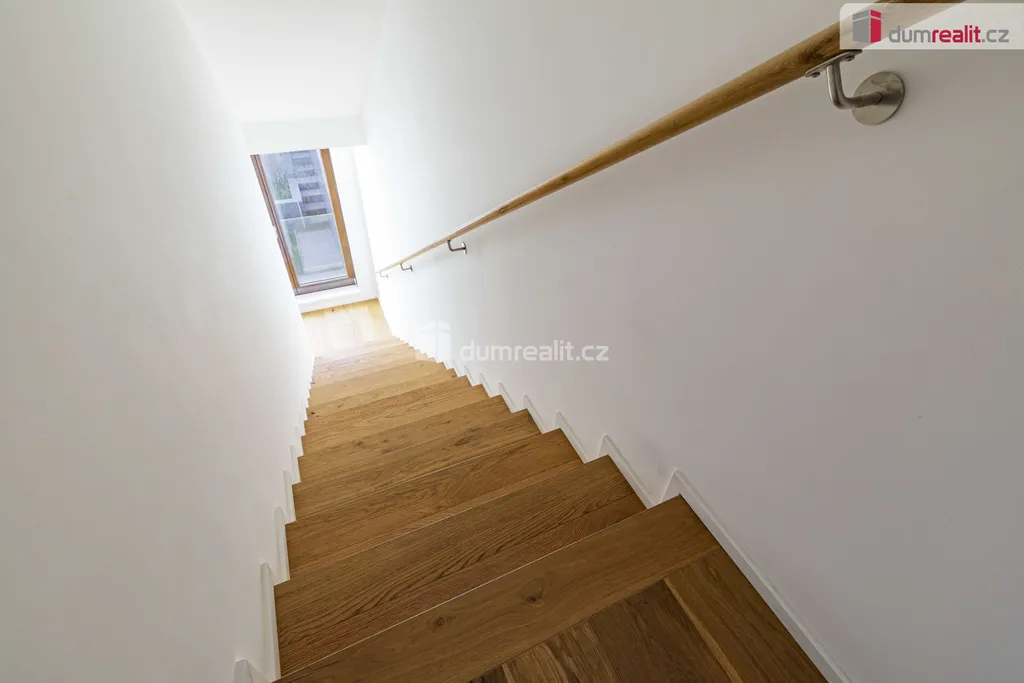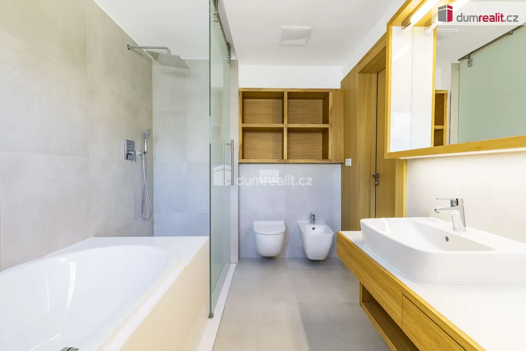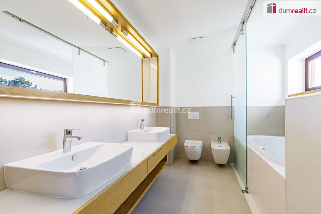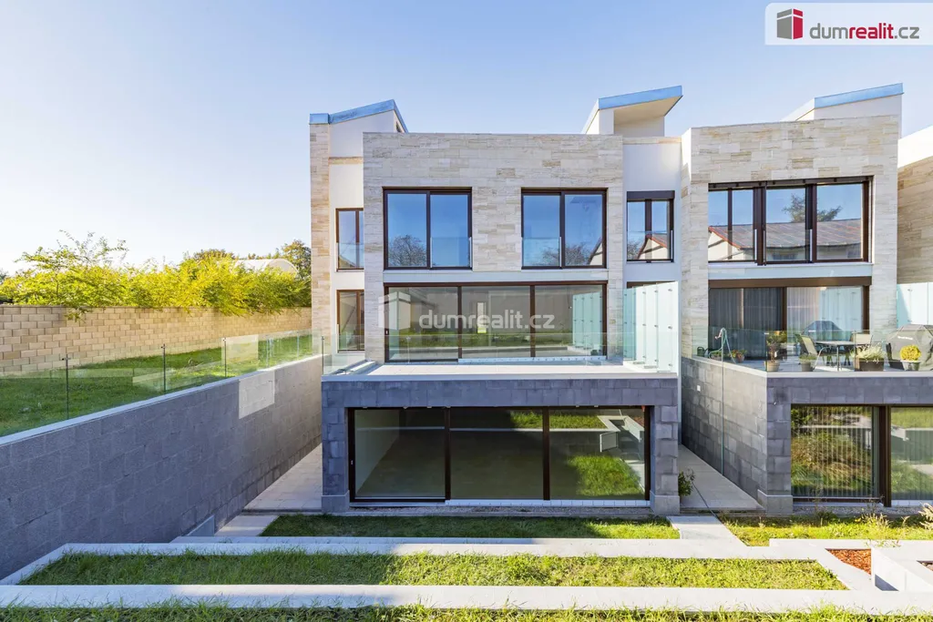 Hledáte nadstandartní dům v blízkosti budoucí stanice metra? Tak právě pro vás zde mám multifunkční, vícegenerační rodinný dům (B8 - rohový) s dispozicí 6+kk v Praze 12 – Libuš, který je vzdálen pouze 2 minuty pěšky od budoucí stanice metra D - Libuš a je v uzavřeném rezidenčním areálu s dalšími 15 domy. Celková podlahová plocha domu je 378 m², jsou zde dvě terasy (145 m²), plocha pozemku je 619 m² z toho zahrada má celkem 441 m². Dispozice tohoto moderního, nízkoenergetického domu tvoří v přízemí: prostorný obývací pokoj + kk (70,6 m²) se vstupem na terasu (28,5 m²), pracovna (22,7 m²) s vlastní koupelnou s WC (3,5 m²), dále společná koupelna (4,5 m²) a zádveří (5 m²). Po schodišti (12 m²) obloženém dřevem se dostaneme do 1. patra (2NP), kde je hlavní ložnice (18,5 m²) s šatnou (10,1 m²) a vlastní koupelnou s WC (10,7 m²), dále pak šatna (4,8 m²), hala (10,3 m²) a dva dětské pokoje. První pokoj (18,4 m²) má vlastní koupelnu (5,1 m²) s WC, druhý pokoj (19,6 m²) má také koupelnu (5,1 m²). Přes samostatnou chodbu (11,7 m²) se dostaneme ke schodišti (7,6 m²) do 2. patra, kde se nachází panoramatická terasa 116,4 m², která je z části krytá (prostor sprchu nebo vířivku) a je orientována na východ, sever a západ. Z obývacího pokoje se po schodišti dostaneme do suterénu domu, kde je multifunkční místnost, kterou můžete zcela upravit podle svých potřeb. Tato místnost má nadstandartních 96,3 m² a můžete zde mít opravdu cokoliv – např. samostatnou bytovou jednotku 1+kk s koupelnou a WC, kinomístnost, karaoke, panský klub, vnitřní bazén, fitness nebo svoji soukromou pracovnu (např. pro advokáty, architekty, projektanty, daňové poradce apod.). Tato místnost je nedokončená a je připravena na úpravy dle vašich představ. Místnost má také přístup přímo z garáží – velmi výhodné. V suterénu domu je dále chodba (4,9 m²) se zádveřím a sklep / tech. místnost (18,8 m²) a komora (5 m²), kde je umístěný plynový kondenzační kotel. Ze suterénu je také vstup na zahradu (144 m²), která je kaskádovitá. Další zahrada je před vstupem do domu (44 m²) ve vnitrobloku. V celém domě je podlahové topení, okna jsou dřevěná, v obývacím pokoji a na terase je HS portál, u všech oken je příprava ne před okenní žaluzie, v domě je zavedeno optické vlákno na internet, podlahy jsou dřevěné vč, obložení schodiště. Vstupní dveře do domu jsou bezpečnostní, interiérové pak také dřevěné s obložkami. Osobně mohu doporučit, můj velmi blízký přítel zde bydlí, rád vám jako zájemci o koupi může předat další informace. Celý projekt je umístěn na konci slepé ulice se vstupem do budoucího parku. Stanice metra D - Libuš bude v docházkové vzdálenosti - realizace 2032. Velmi vám doporučuji prohlídku tohoto domu 6+kk (378 m²), který vás svou velikostí ohromí, dispozicí nadchne, a nakonec chytí za srdce. Kompletní prezentace je na našich webových stránkách. Ev. číslo: 656015.