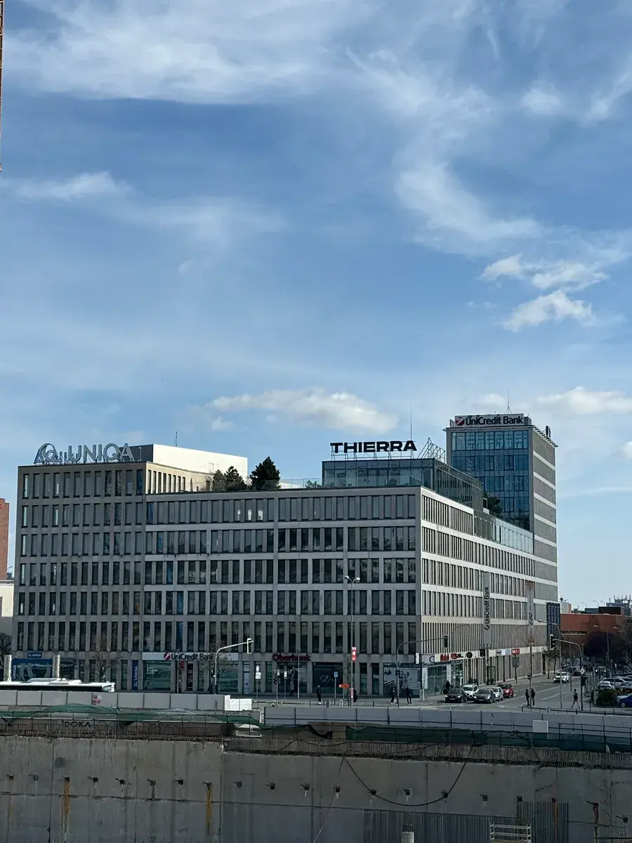 Nájemcům je dále k dispozici společná střešní terasa s dechberoucím výhledem na město, která poskytuje příjemné místo pro odpočinek nebo neformální pracovní setkání. Parkování je možné v krytých podzemních garážích přímo v budově.